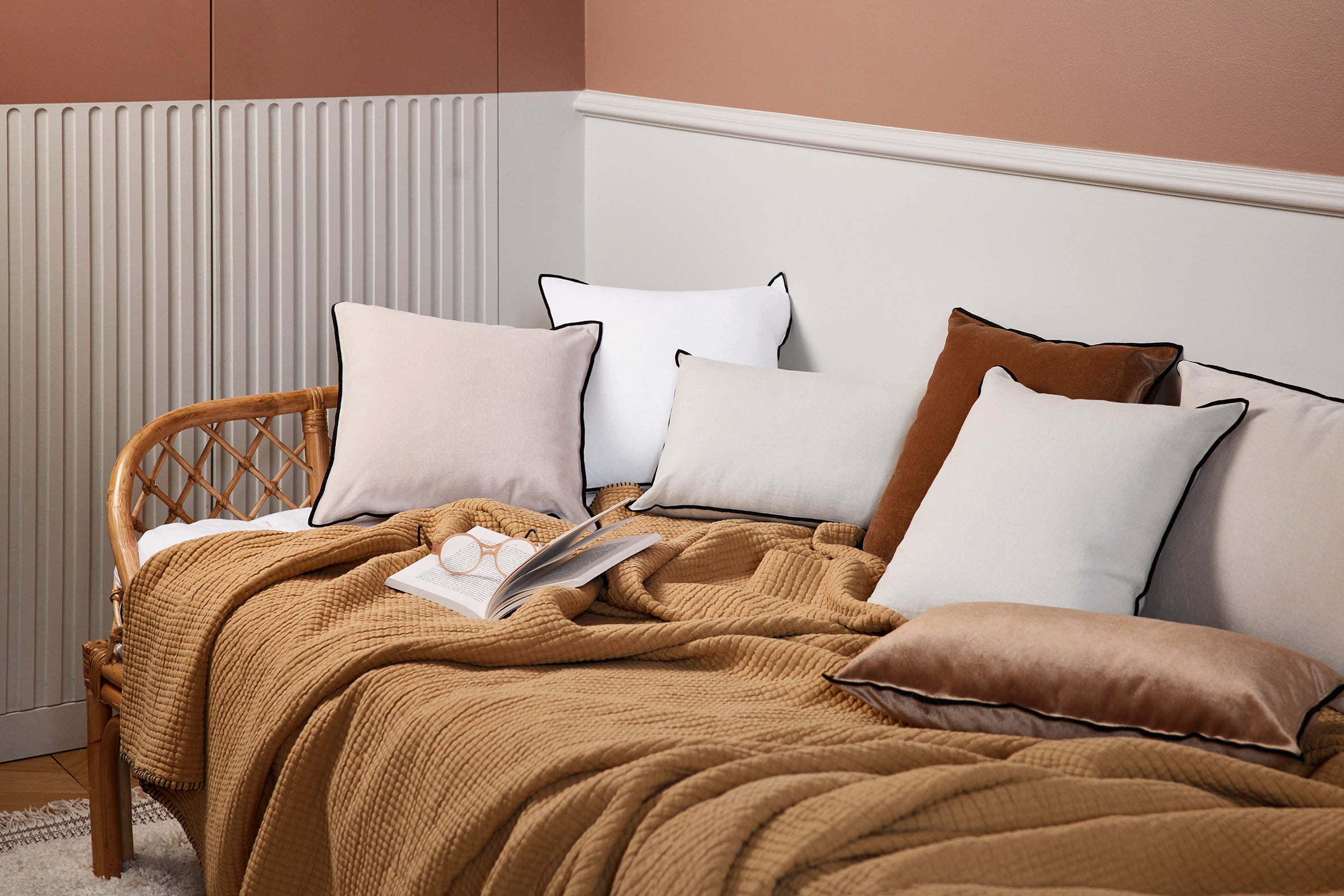 Dario, c’est notre collection iconique de linge de maison en velours. Elle se distingue par sa palette de couleurs profondes et son bourdon noir.