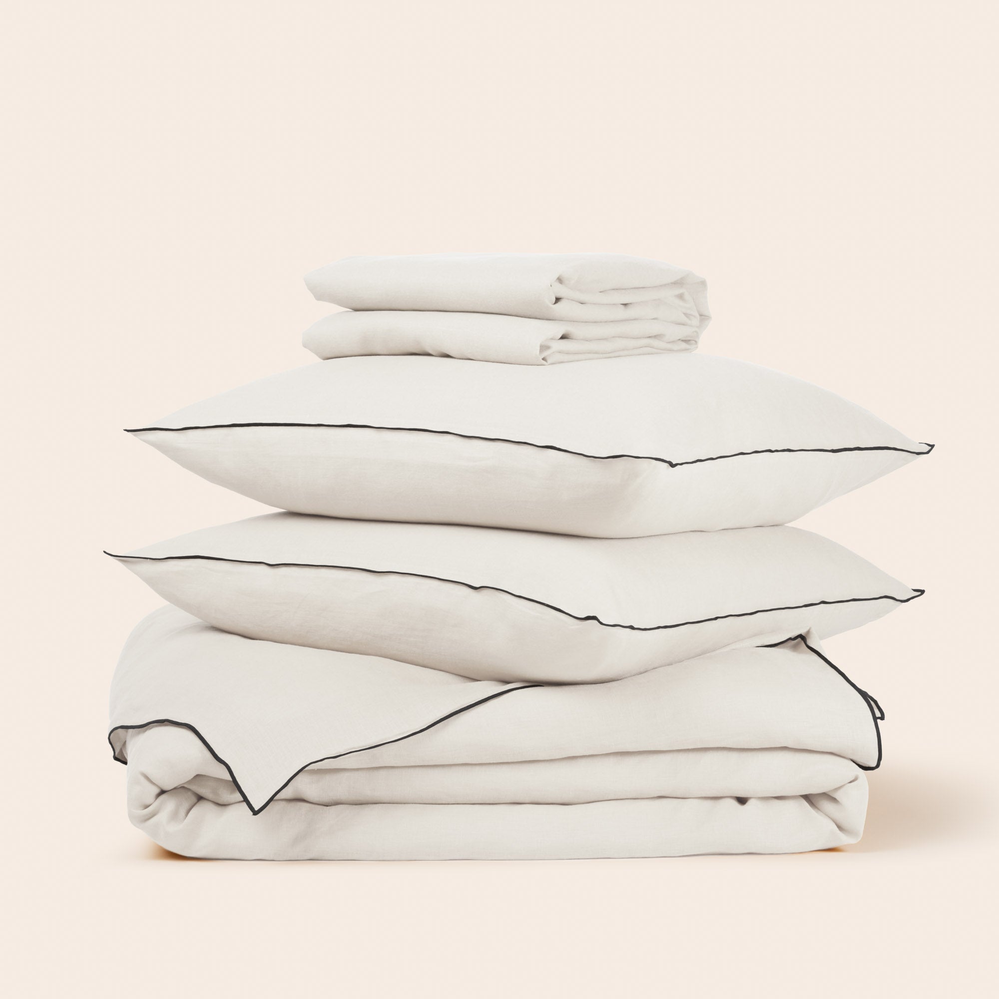 Chez Madura, nous avons conçu la collection Carlina pour offrir une expérience de luxe et de confort inégalé. Le lin lavé est non seulement esthétique mais aussi pratique, avec ses propriétés respirantes et thermorégulatrices, parfaites pour un usage tout au long de l'année. La texture froissée du lin confère une allure décontractée mais élégante, tandis que la finition point de bourdon noir ajoute un contraste subtil mais sophistiqué. Chaque pièce de la collection, qu'il s'agisse de draps, de taies d'oreiller ou de housses de couette, est conçue pour vous offrir un confort optimal.