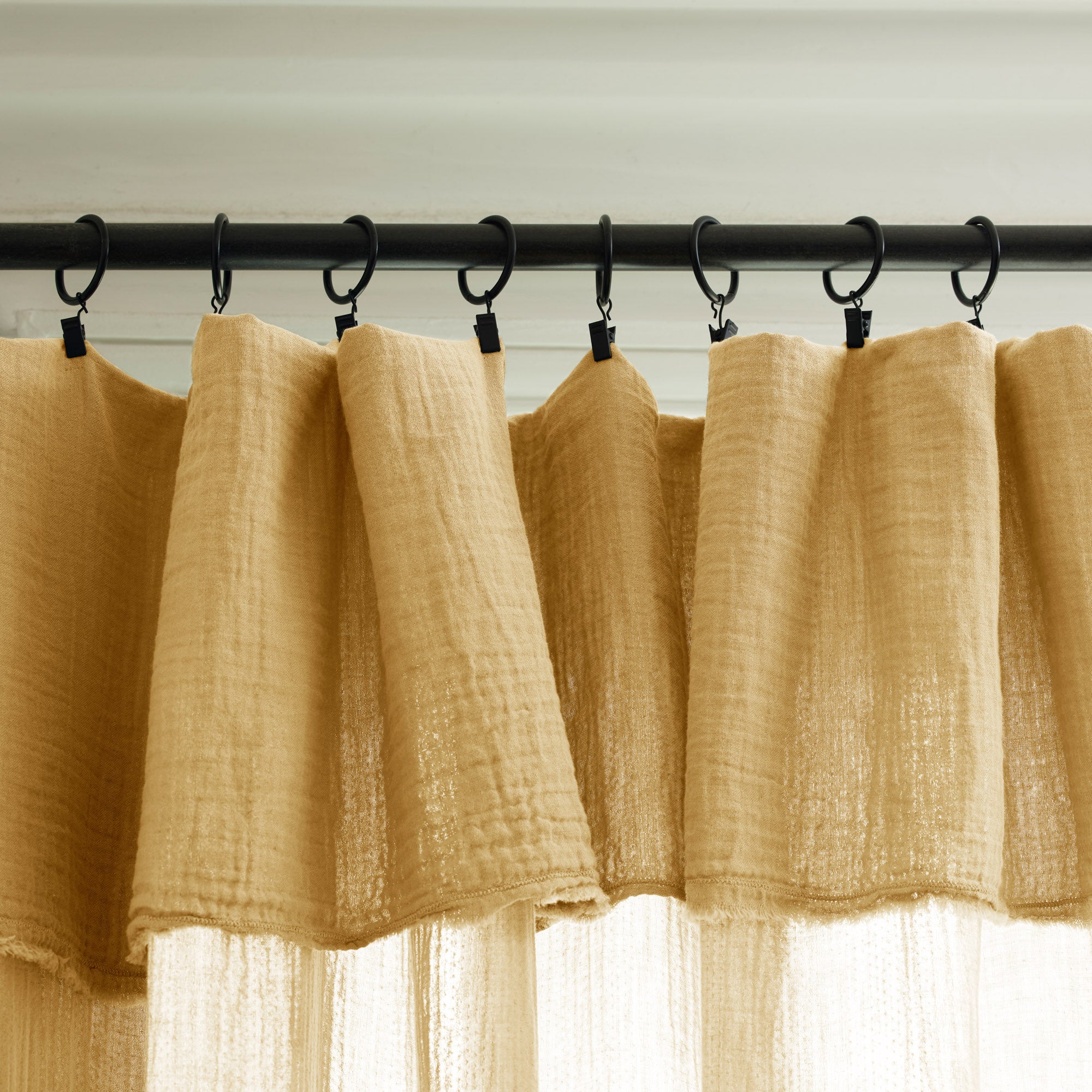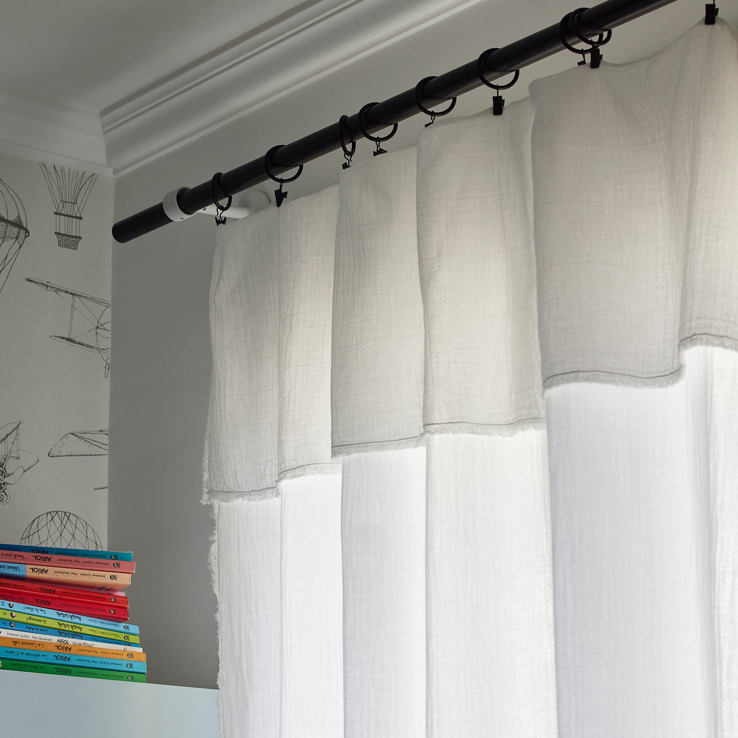 Tous nos rideaux sont disponibles dans plusieurs tailles, pour convenir à toutes les fenêtres. Grâce à ses accessoires, notamment aux anneaux-pinces, ils s’installent facilement dans toutes les pièces : une simple tringle.