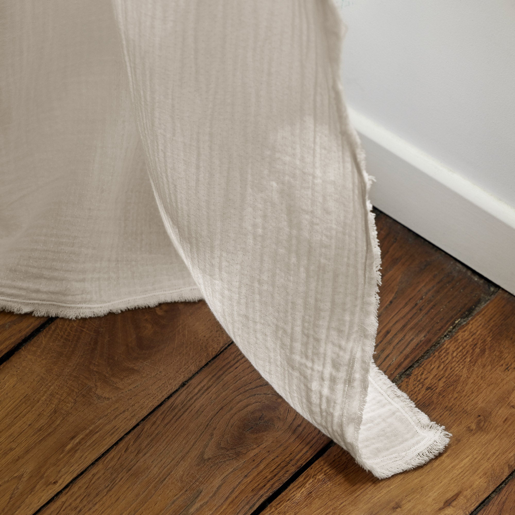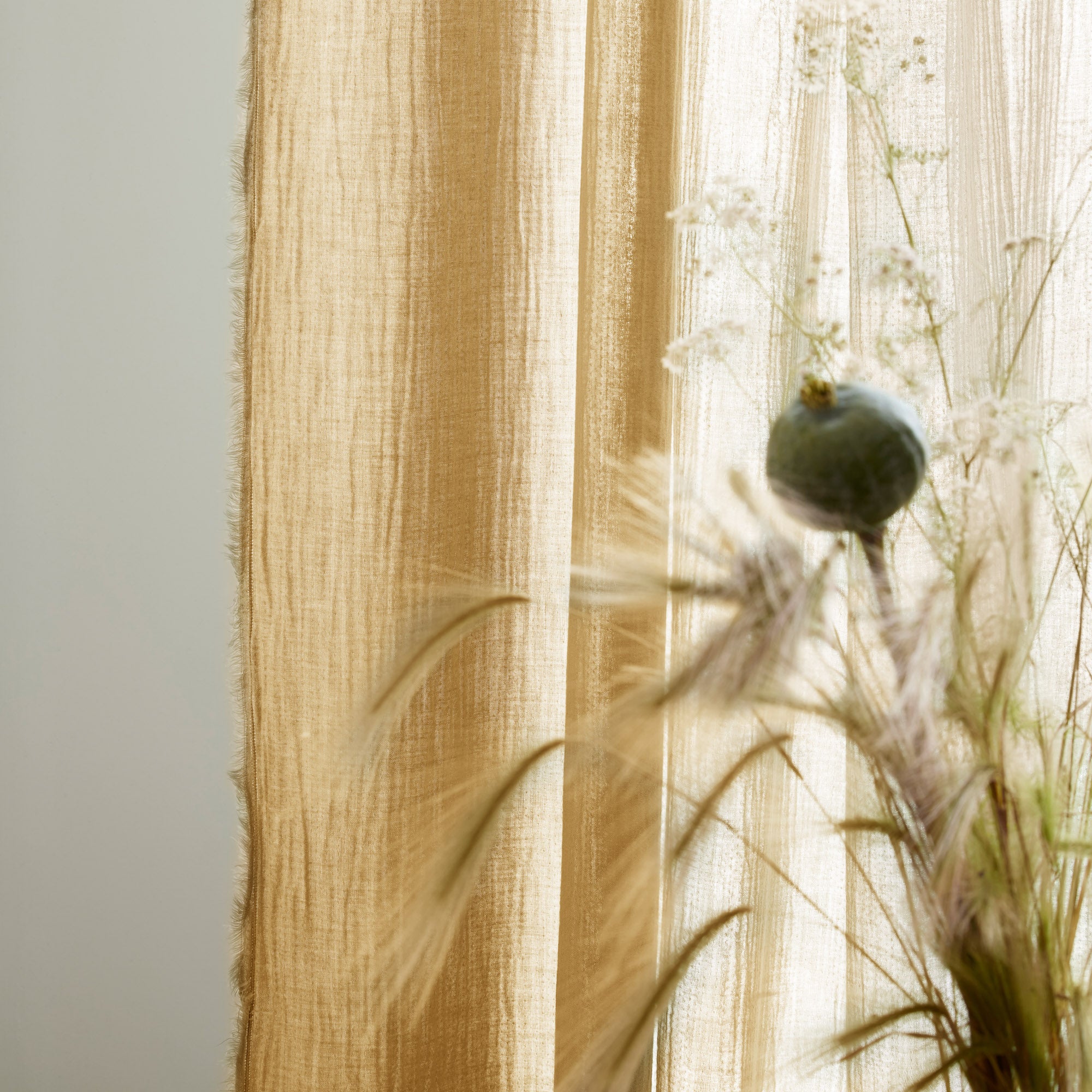 Non. Le lin a un tombé fluide et naturel ; il est léger et légèrement texturé. Le coton, en particulier la gaze de coton, se caractérise par un tombé doux et légèrement froissé qui diffuse la lumière pour une ambiance cosy. Le velours, beaucoup plus épais, offre un tombé dense et structuré qui confère un aspect sophistiqué et assure une bonne isolation thermique et phonique. Selon l’effet recherché et l’orientation de la pièce, choisissez un tissu léger (lin ou coton) pour un drapé aérien et un tissu lourd (velours) pour un tombé opulent et isolant.