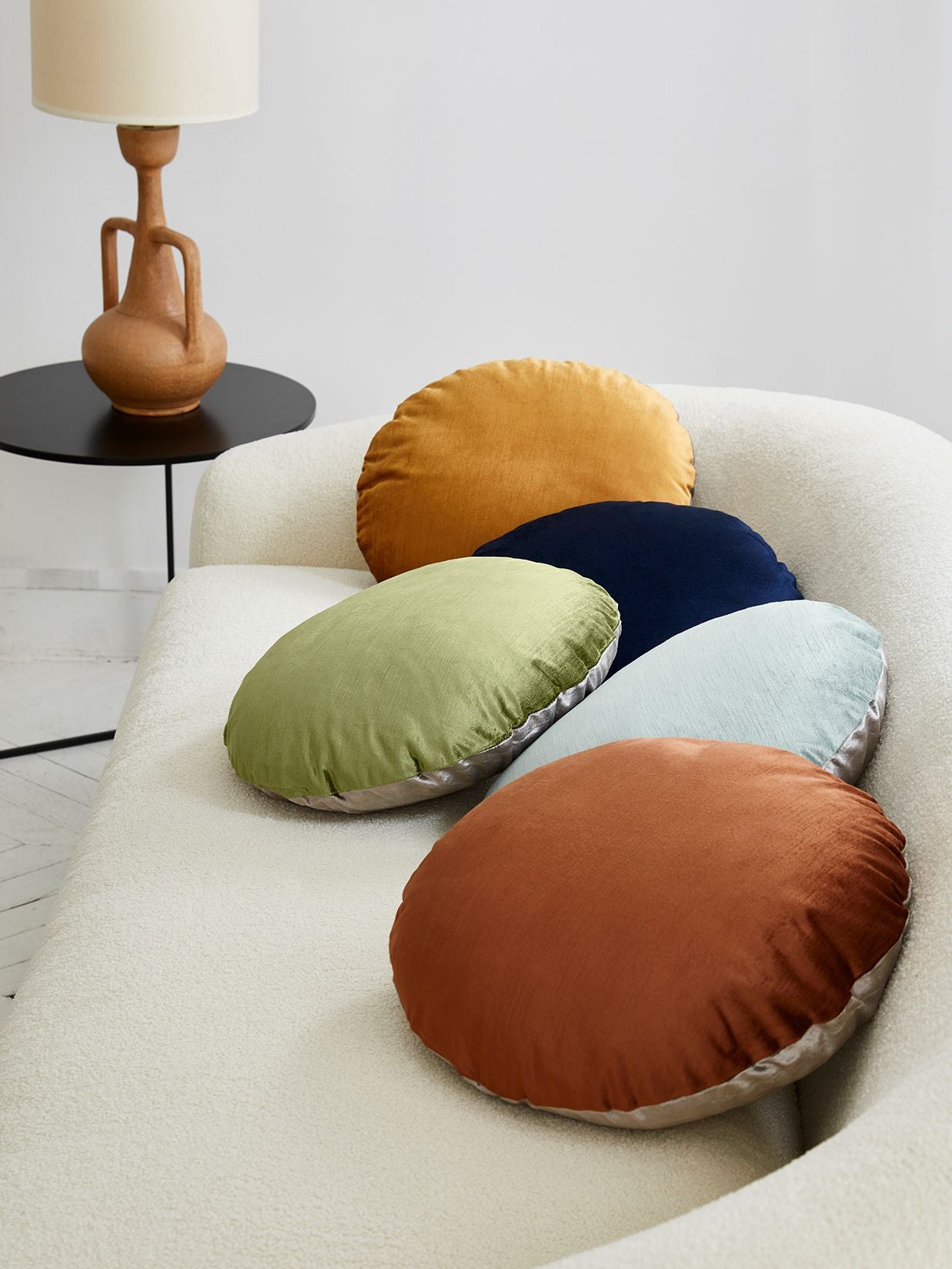Mischen Sie drei Komplementärfarben und mischen Sie die Größen, um einen schicken Boudoir-Chic zu schaffen. Sie haben eher Lust auf eine Einrichtung, in der sich edle Effekte und Originalität vermischen? Wählen Sie ein gemustertes Designkissen und kombinieren Sie es mit zwei oder drei Farben von Castiglione.