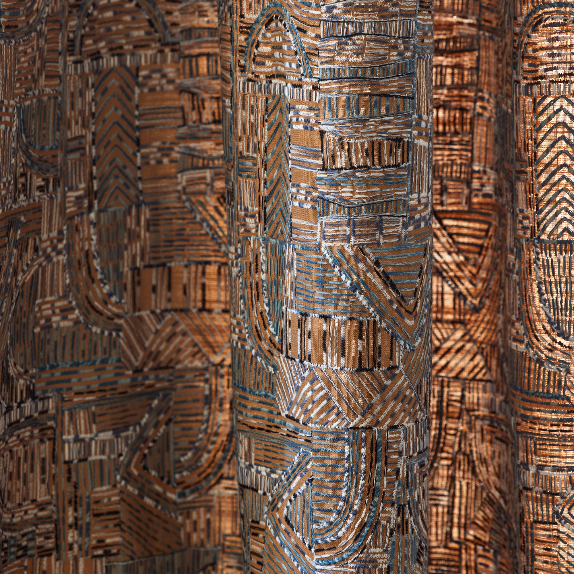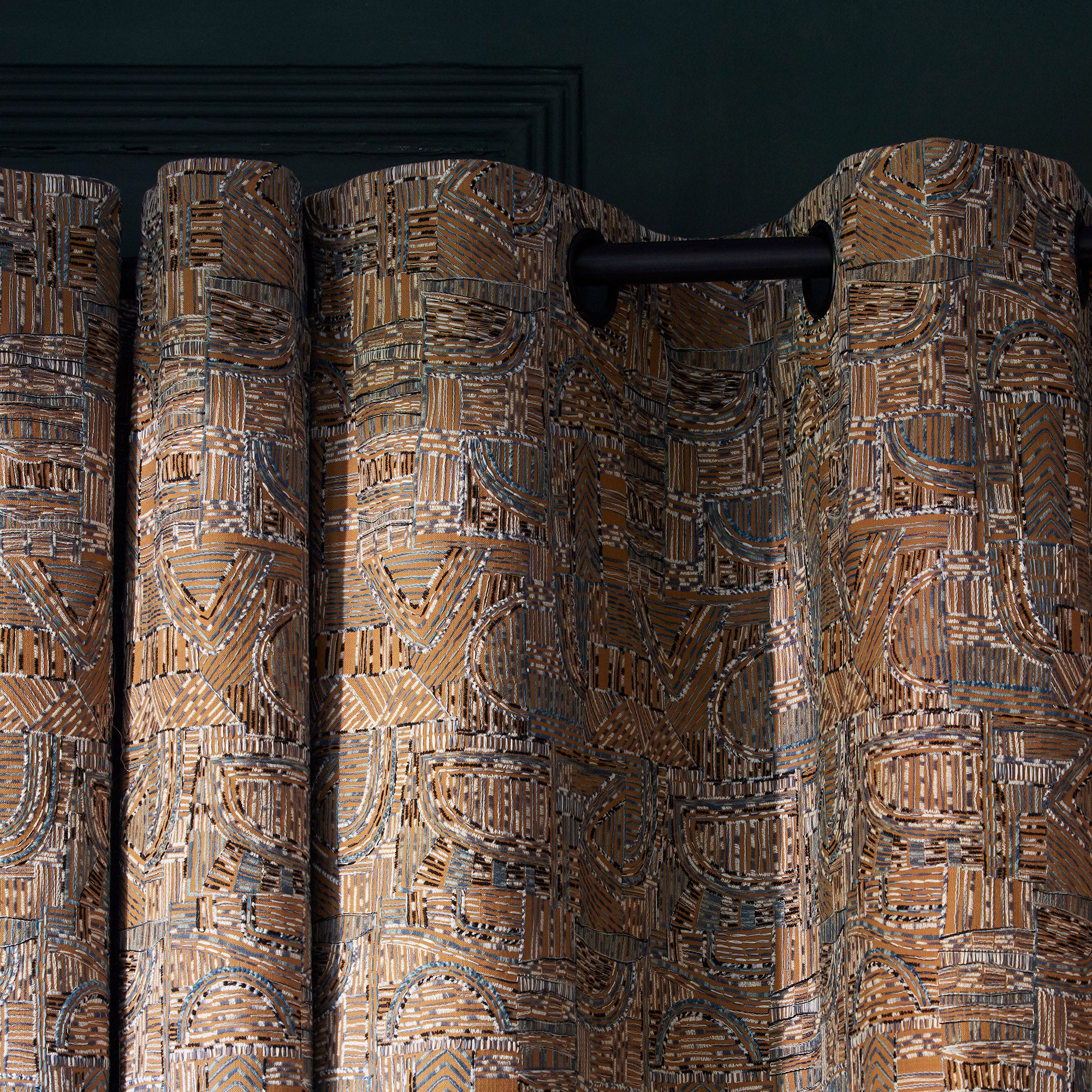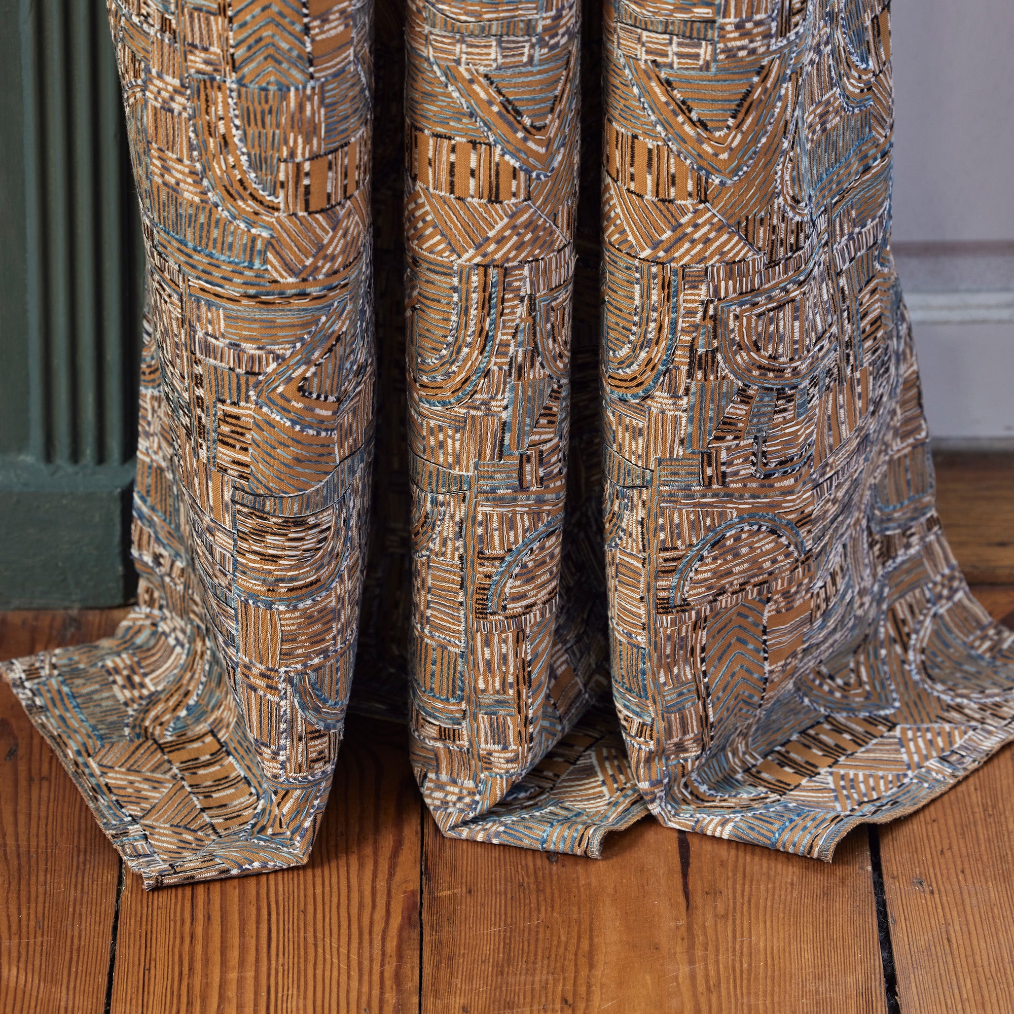 Sie finden hier also gemusterte Vorhänge in folgenden Stilrichtungen modern, ethnisch, Bohème, Art Deco, blumig, Originale oder Grafik. Jedes Stück nimmt die Codes und Farben des Stils auf, von dem es inspiriert wurde. Unsere Art-Deco-Vorhänge zum Beispiel sind in dunklem Schwarz gehalten und mit goldenen Mustern verziert. Ethnische Muster hingegen bevorzugen eher warme Farben, die an die Erde erinnern, wie zum Beispiel Braun oder gelb.