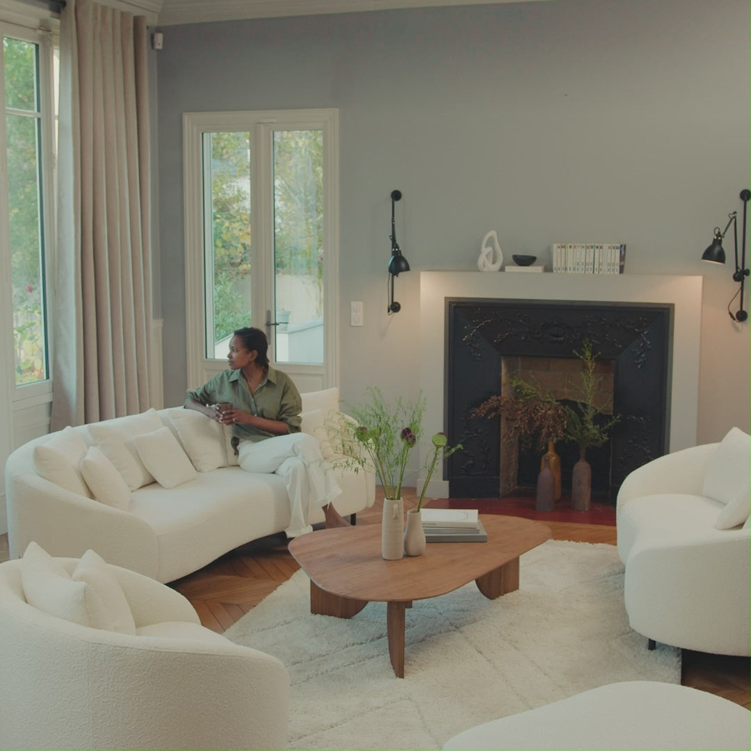 Er wird zum Herzstück Ihrer Wohnung und verleiht ihr einen gemütlichen Retro-Look. Sein Bezug aus ungebleichtem Bouclé verleiht ihm diesen Kokon-Effekt, den wir so lieben. Die geschwungenen Linien und die vielen gepolsterten Kissen bieten den nötigen Komfort für einen entspannten Moment.