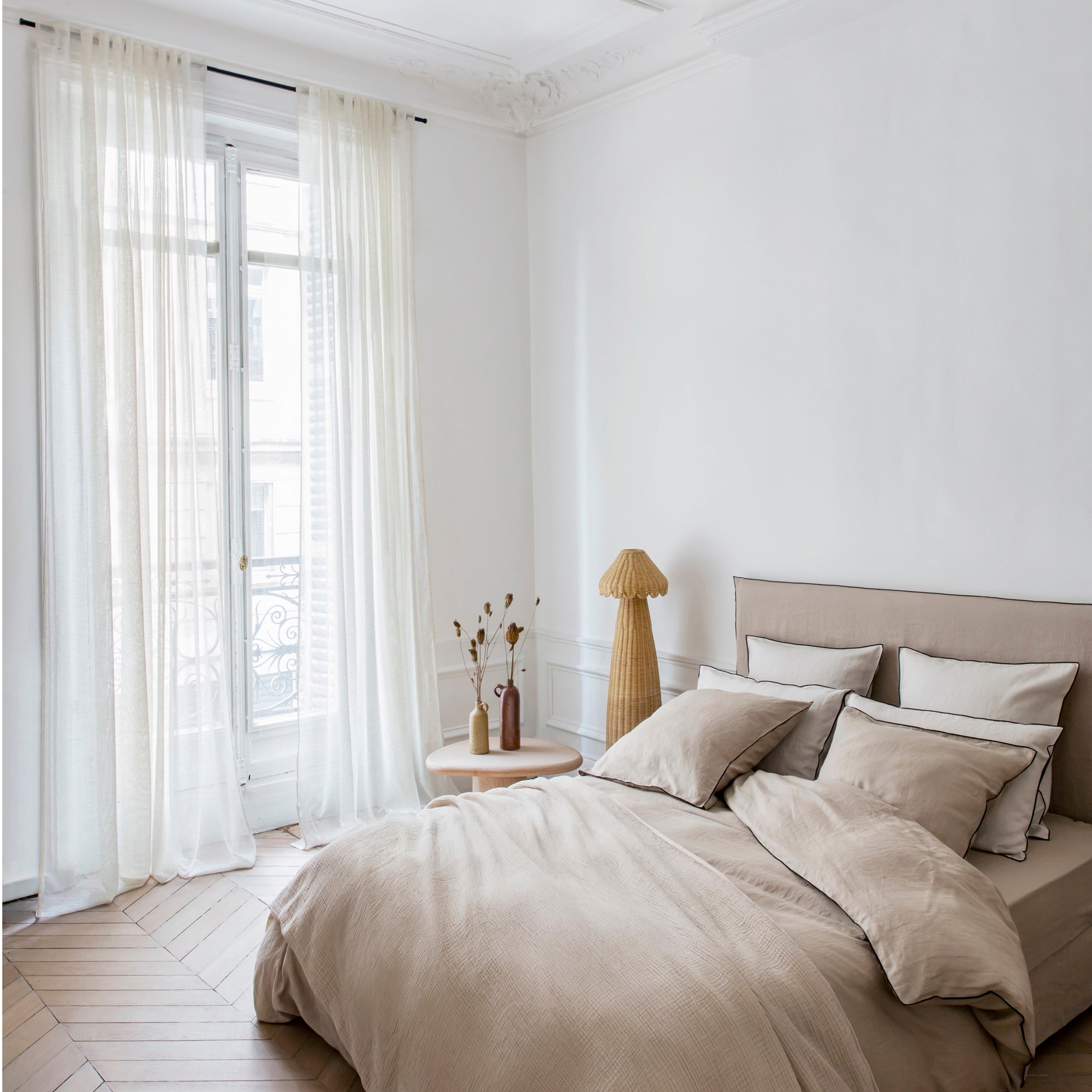 Unsere ikonische Serie Carlina aus 100% gewaschenem Leinen mit böhmischem Charme ist dank ihrer natürlich temperaturregulierenden und atmungsaktiven Faser ideal für jede Jahreszeit. Die breite Farbpalette ermöglicht alle Kombinationen, um Ihre Garnitur individuell zu gestalten und Ihre perfekte Harmonie zu kreieren.