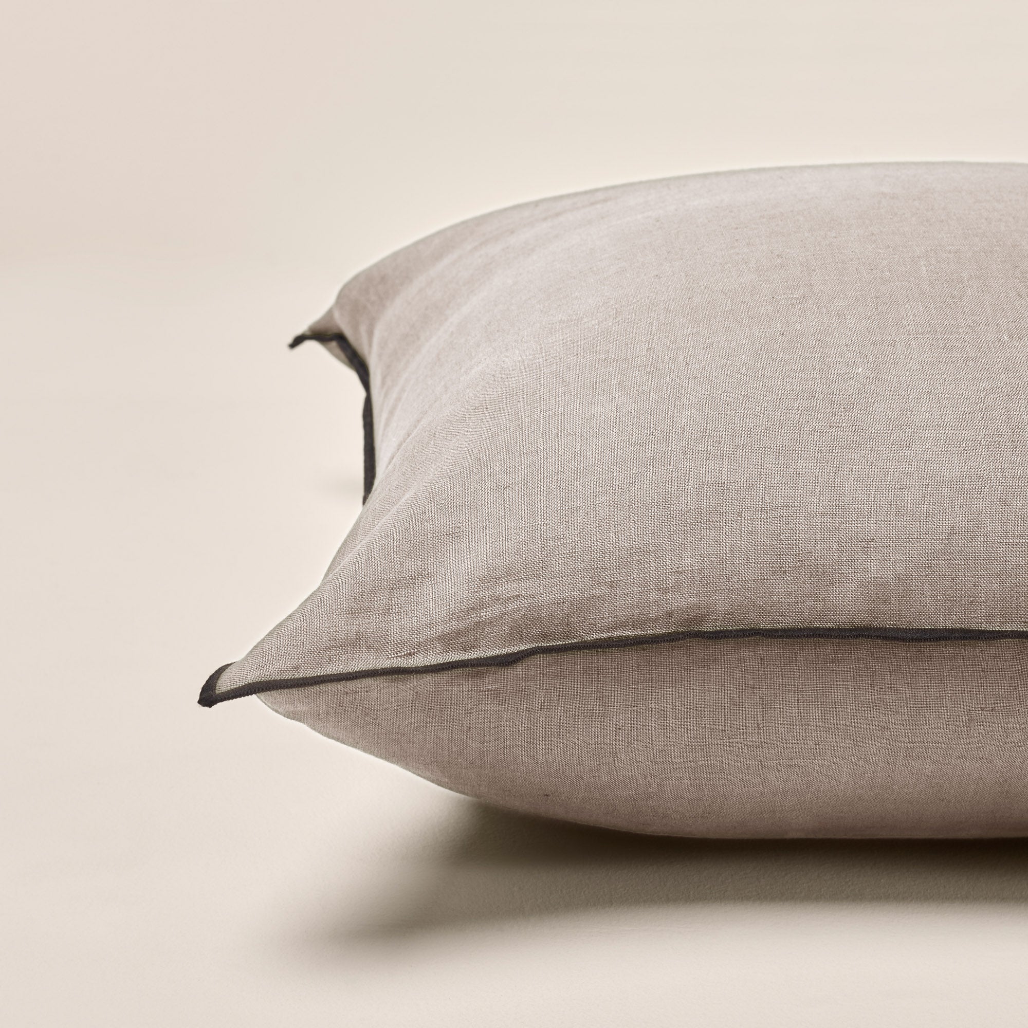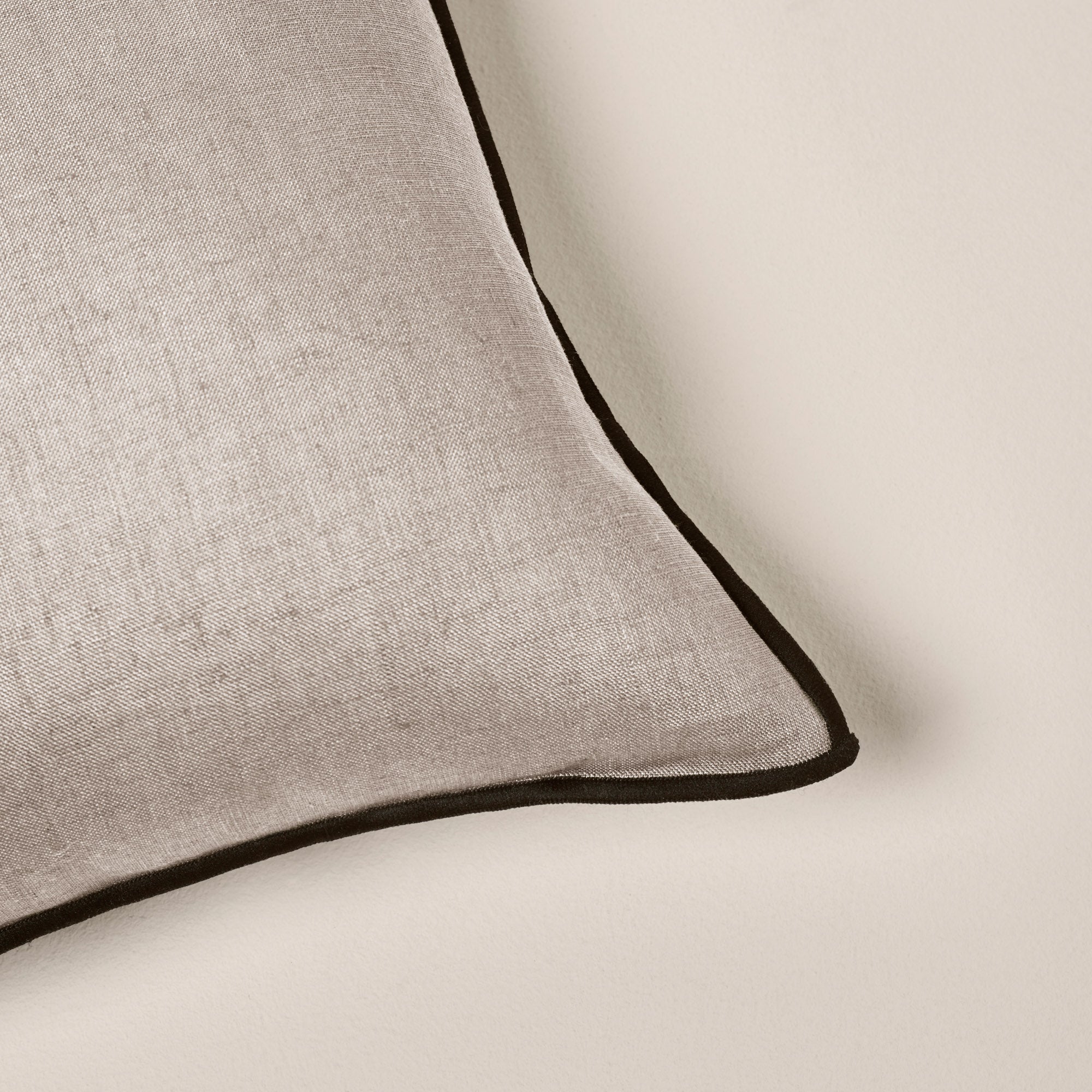 Diese quadratische Kissenhülle Carlina ficelle aus 100% gewaschenem Leinen ist mit einem hübschen schwarzen Bourdon-Finish versehen und eignet sich perfekt, um Ihrem Zuhause einen Bohème-Charme zu verleihen.