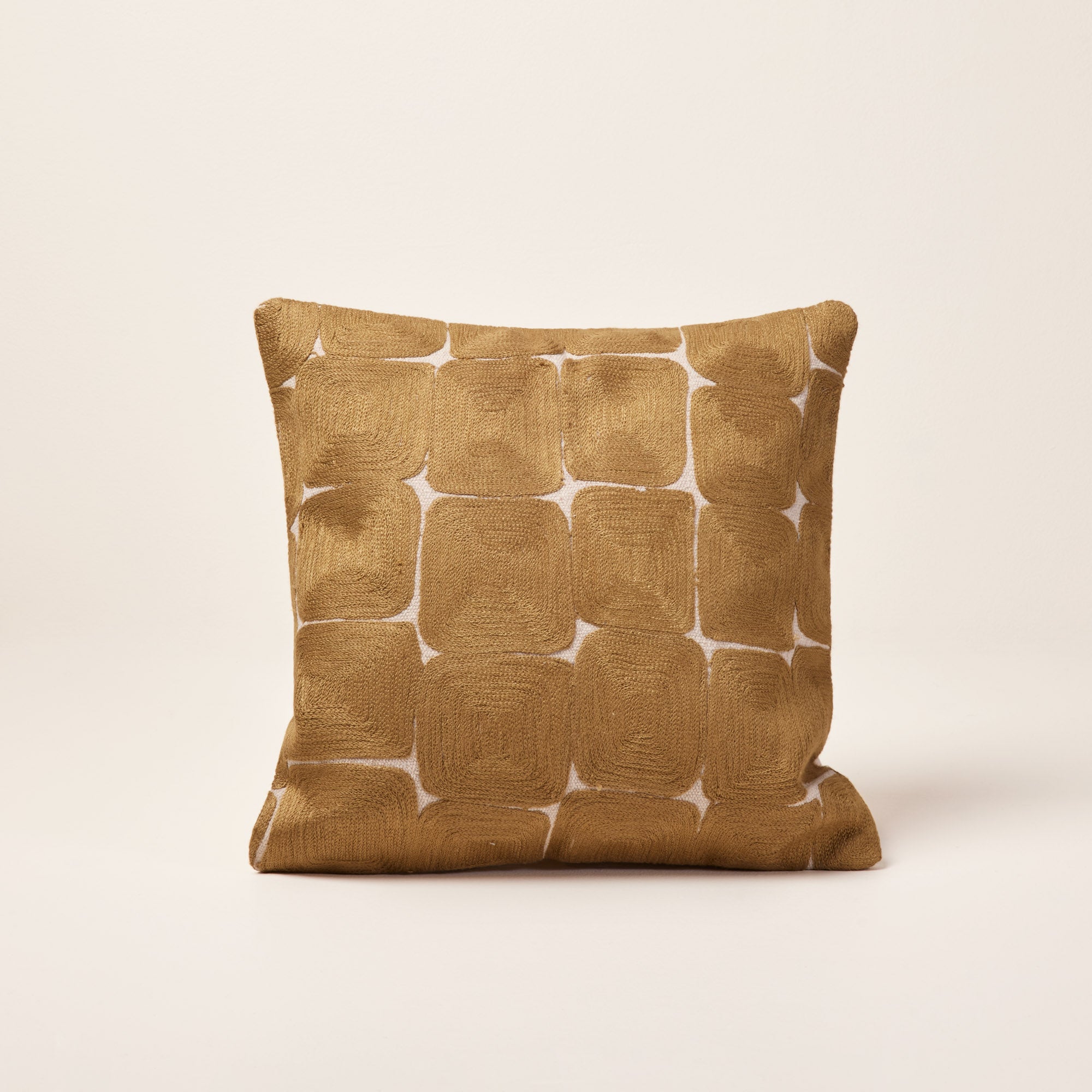 Dieser mit einem Schildpattmuster bestickte Kissenbezug ist eine Neuinterpretation der ikonischen Reptilienhaut. Das Muster entsteht durch eine subtile Stickerei aus Satinfäden, die dem Kissen ein raffiniertes Aussehen verleihen.