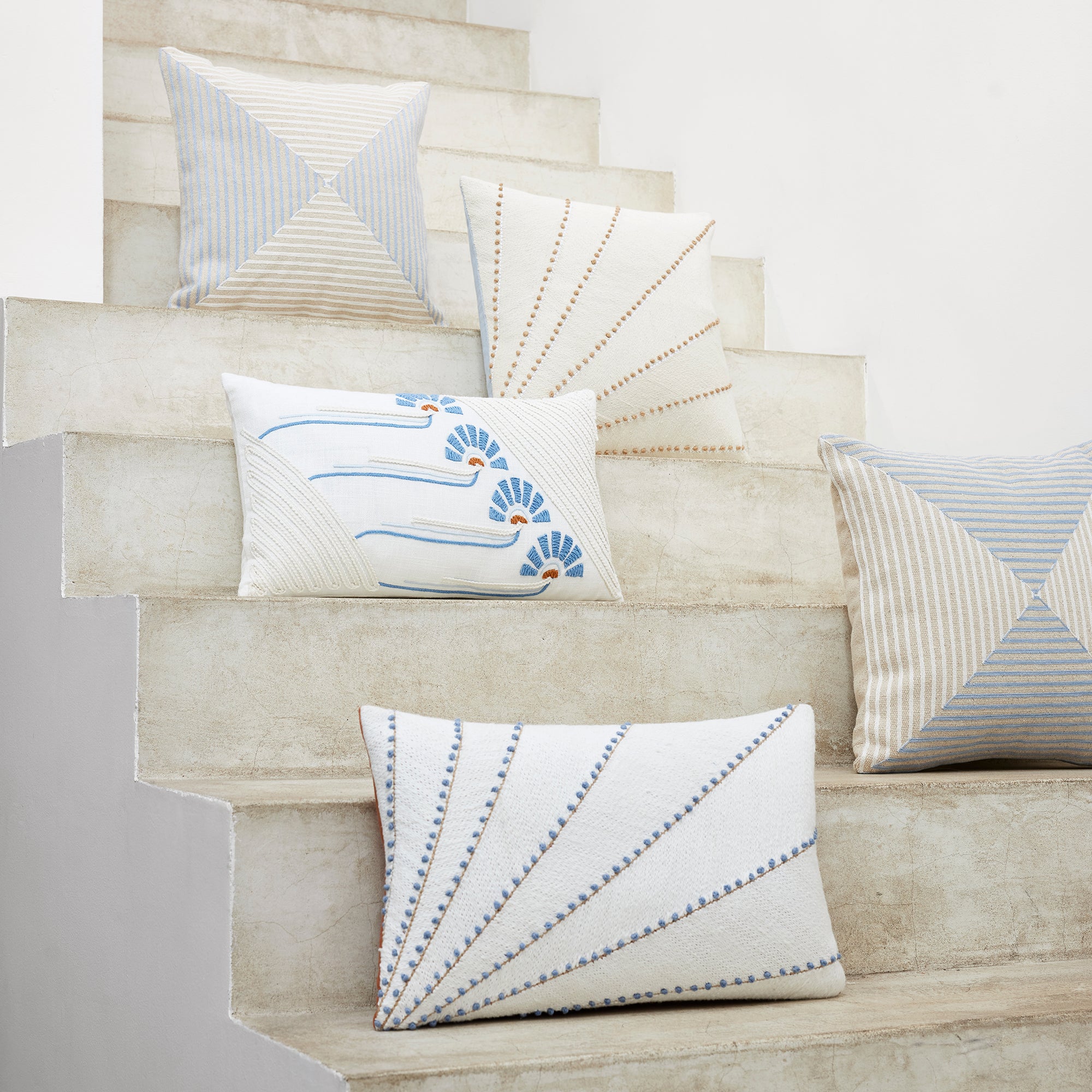 Dieses bestickte Baumwollkissen Oceana symbolisiert das perfekte Gleichgewicht zwischen Natur und Handwerkskunst.
