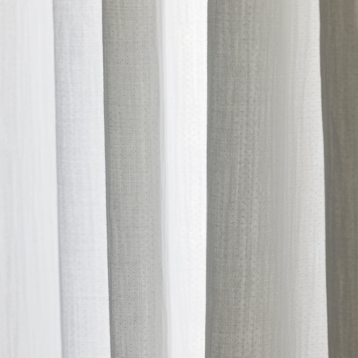 Die Höhe dieses Paneels kann durch einfaches Umschlagen ohne Saum mithilfe unserer Alma-Klemmringe, die am Kopfende des Vorhangs positioniert werden, angepasst werden.