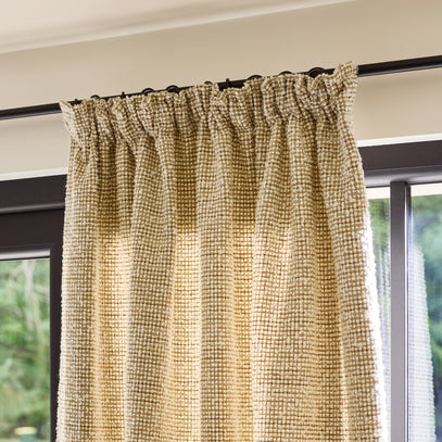 Carlina ocher and black bourdon stitch black eyelet curtain