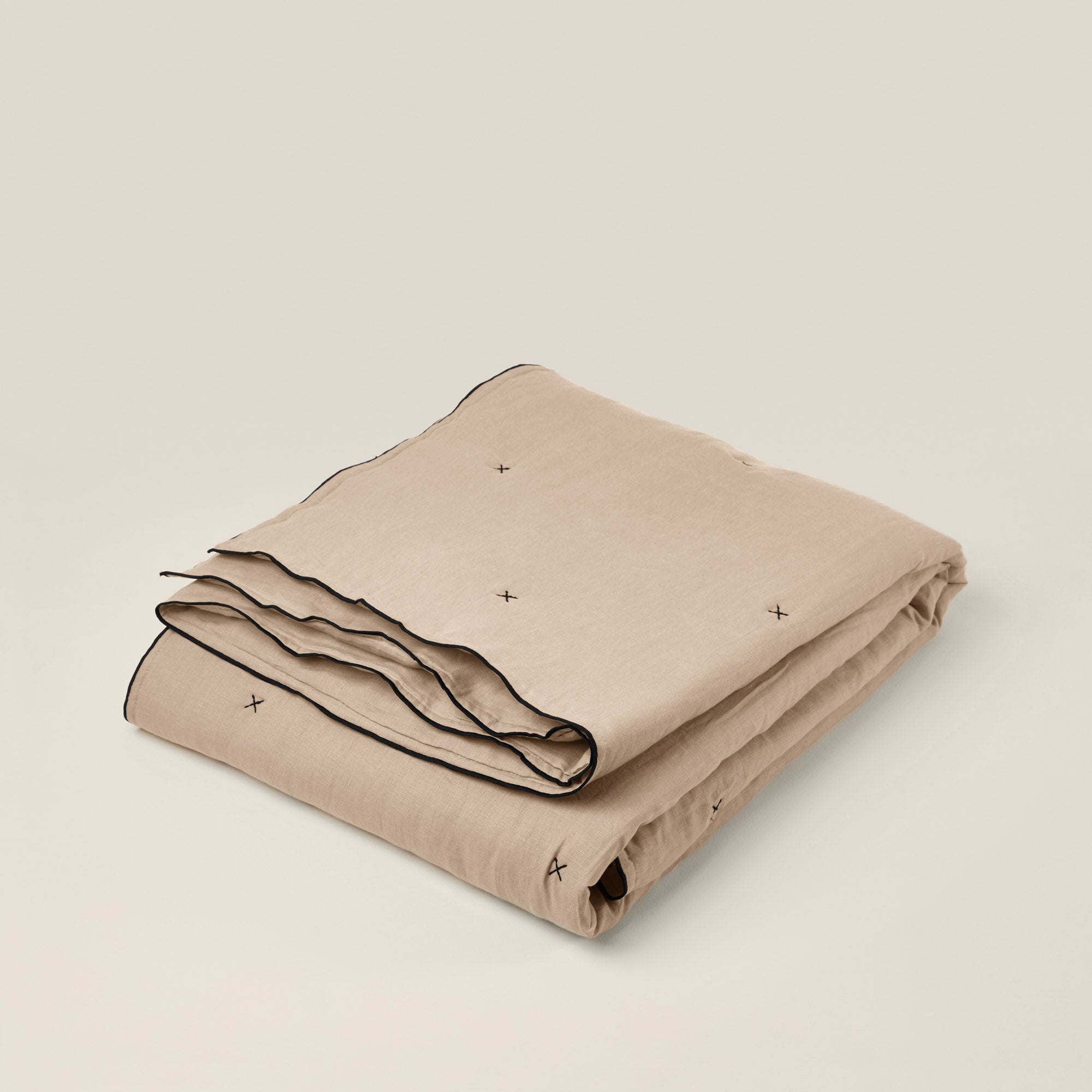 Carlina sand beige and black bourdon stitch quilted bedspread