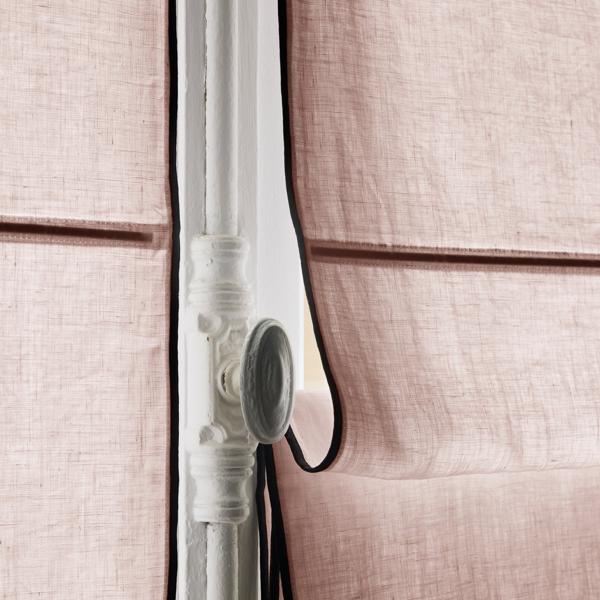 Carlina light pink and black bourdon stitch panel curtain