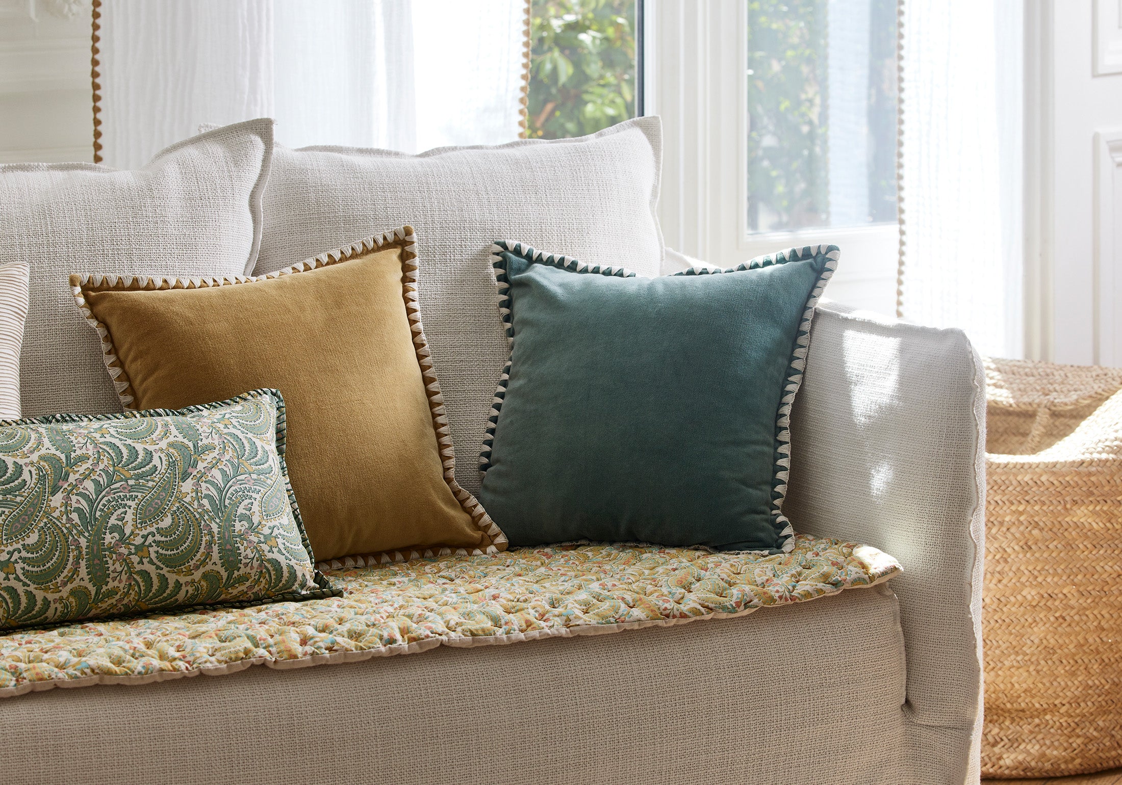 Satia grey green and ivory cushion cover