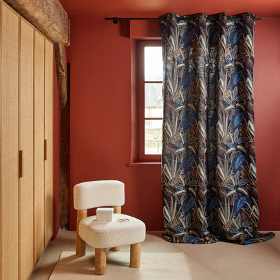 Carlina ocher and black bourdon stitch black eyelet curtain
