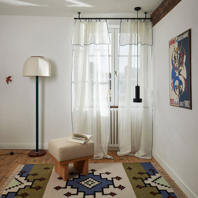 Carlina beige and black bourdon stitch pencil pleat curtain
