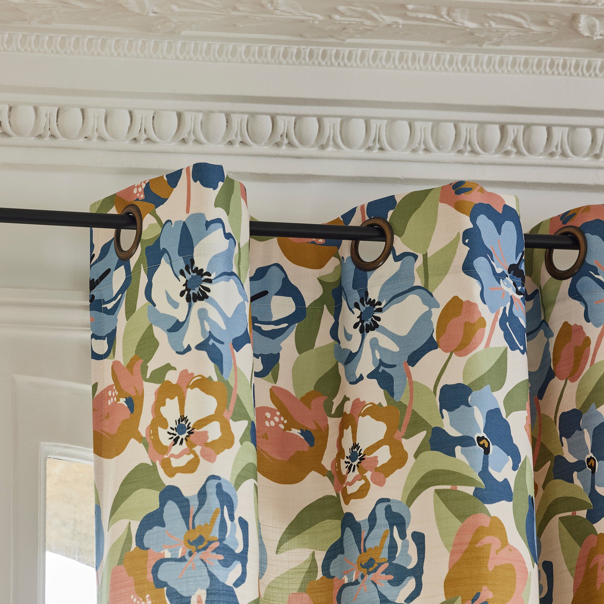 This lively tableau unfolds on a beautiful canvas that falls perfectly, thanks to its gold eyelet construction, which forms beautiful round pleats. The fresh, feminine pastel colors evoke the first blossoms, bringing a touch of softness and luminosity that revitalizes.