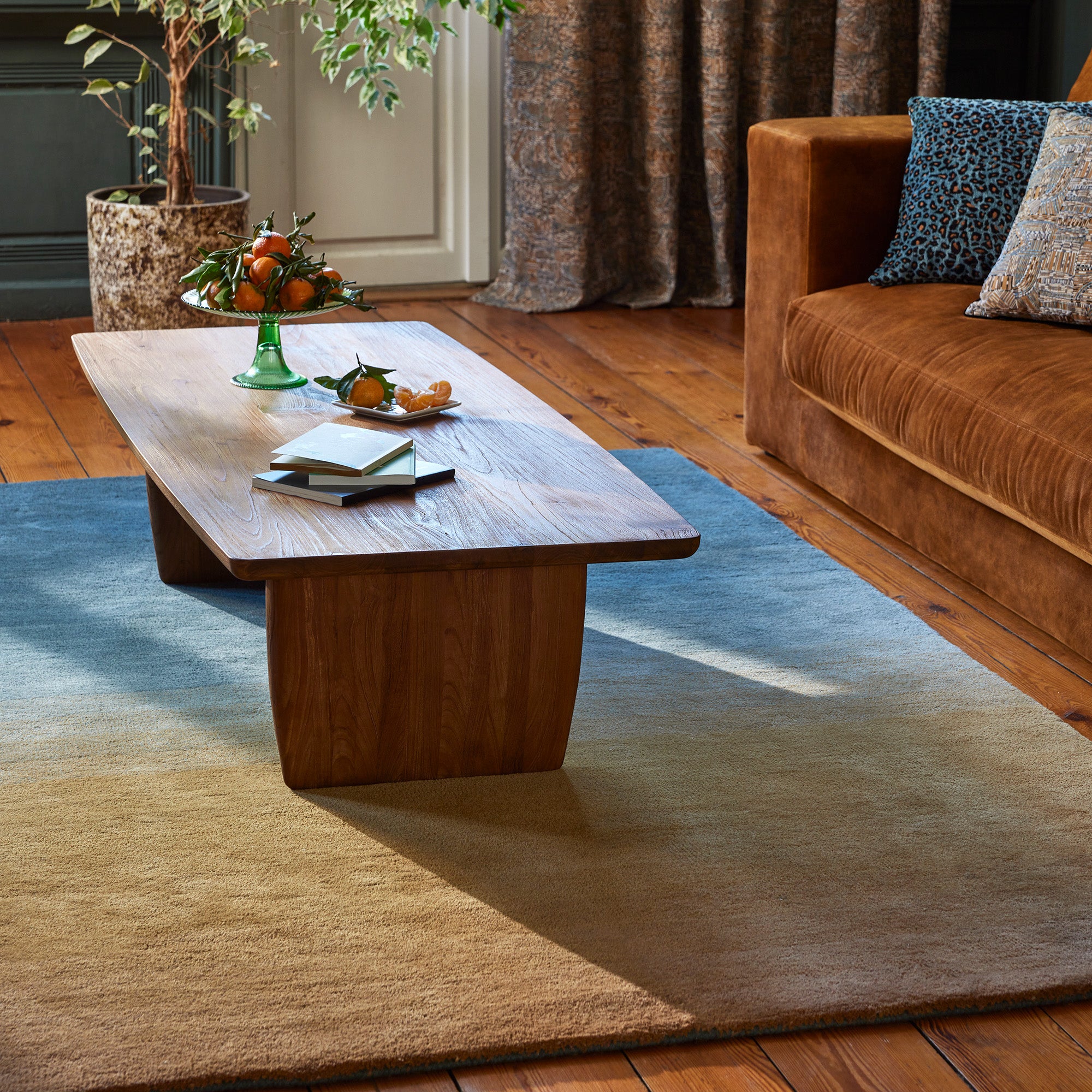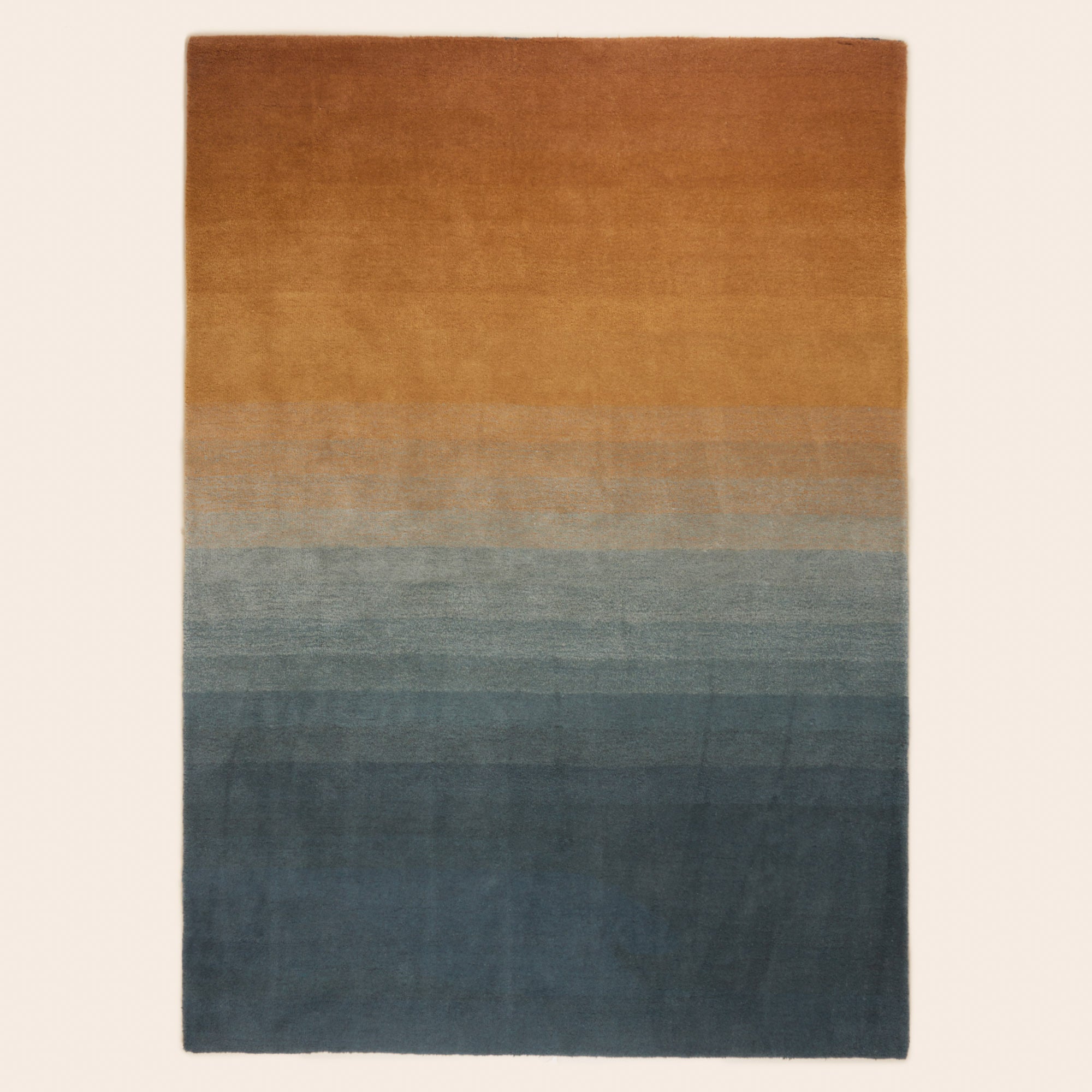 The infinite softness of the Aubea carpet, promises to transform any room into a living tableau. Inspired by the magnificence of a sunset, this rug represents a sublime gradation that extends from petroleum blue to ochre, evoking the ephemeral beauty of the horizon at the end of the day.