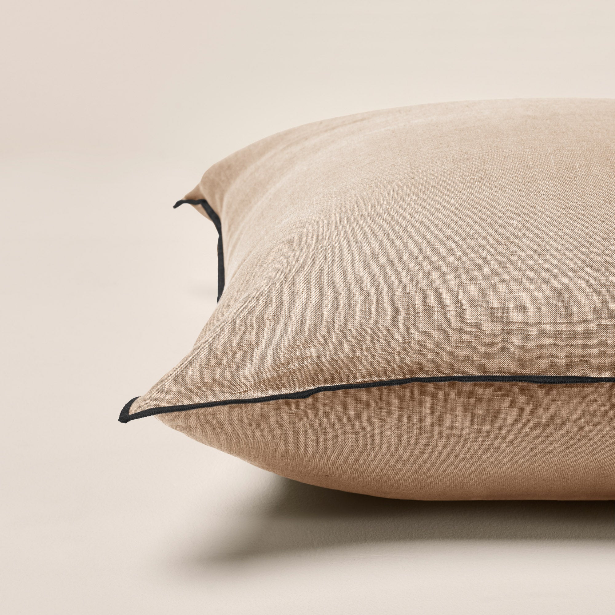 Enhanced by a pretty black bourdon finish, this Carlina sand beige 100% washed linen square cushion cover is perfect for infusing your home with a bohemian spirit.