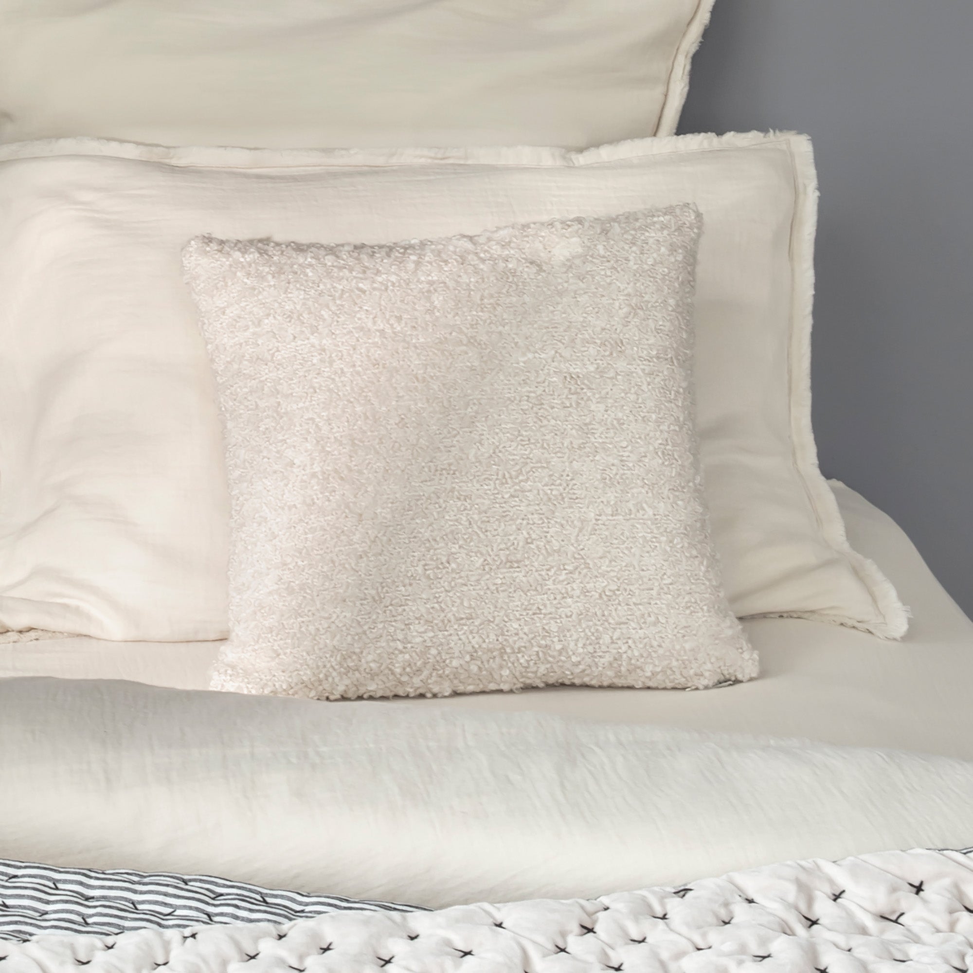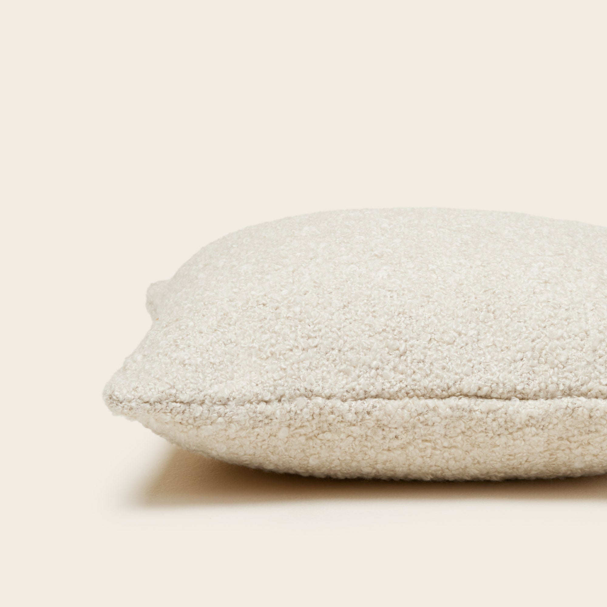 The Leonard cushion is an invitation to relax and let go. Its bouclette texture, obtained using the jacquard technique, and its beige hue give it a cosy, elegant aura.