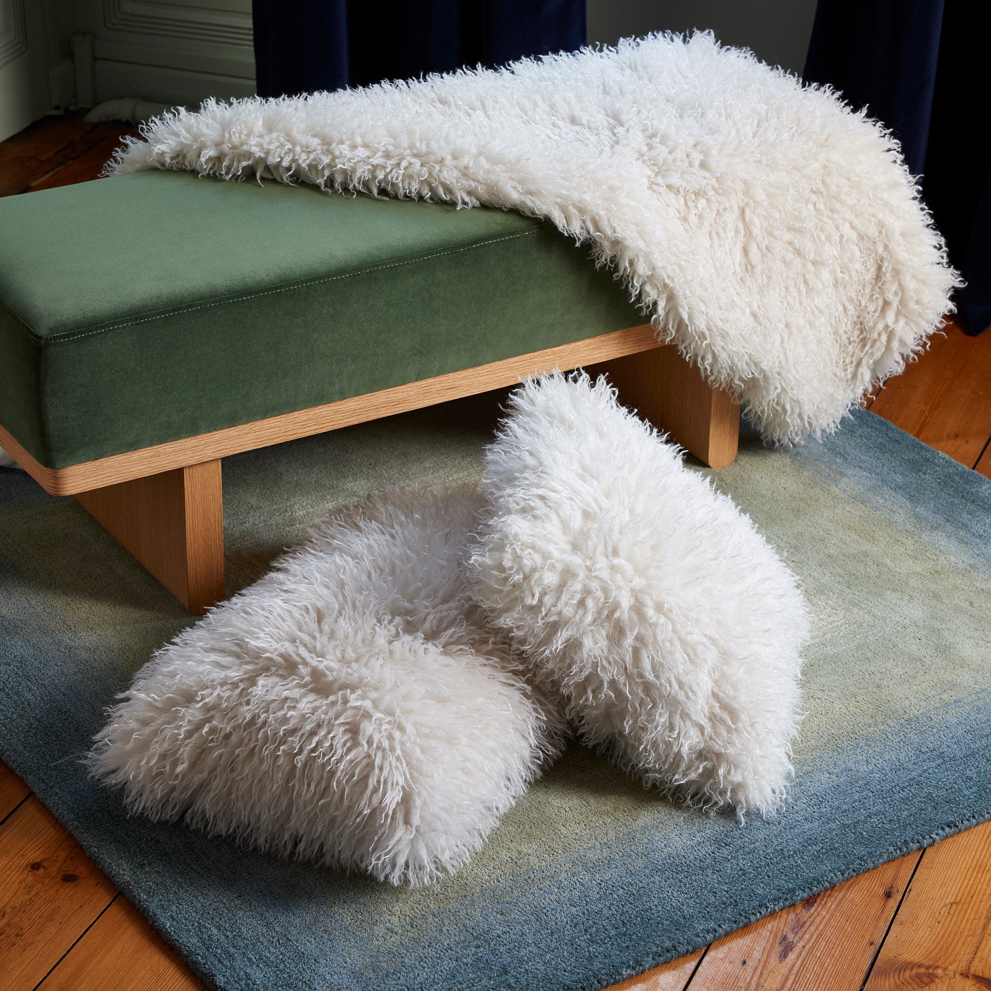 The Ulan plaid faithfully reproduces the look of sheep's wool, adding a dimension of rusticity and charm to your living space. The plaid is also available in square and rectangular cushions to create a cocoon of comfort.