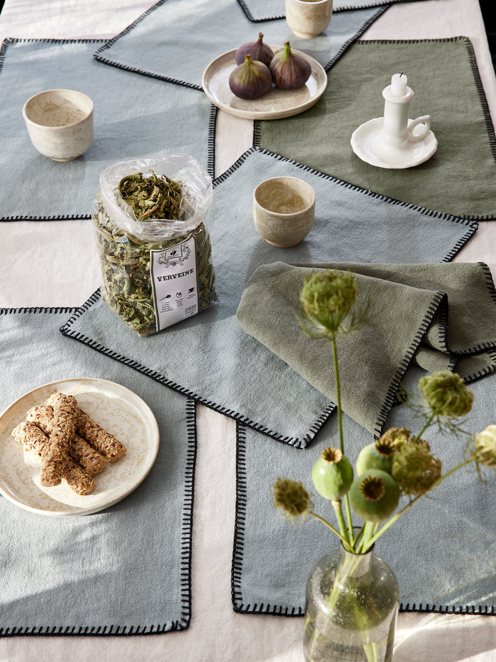 Placemat Carlina grijsgroen en zwarte bourdonsteek