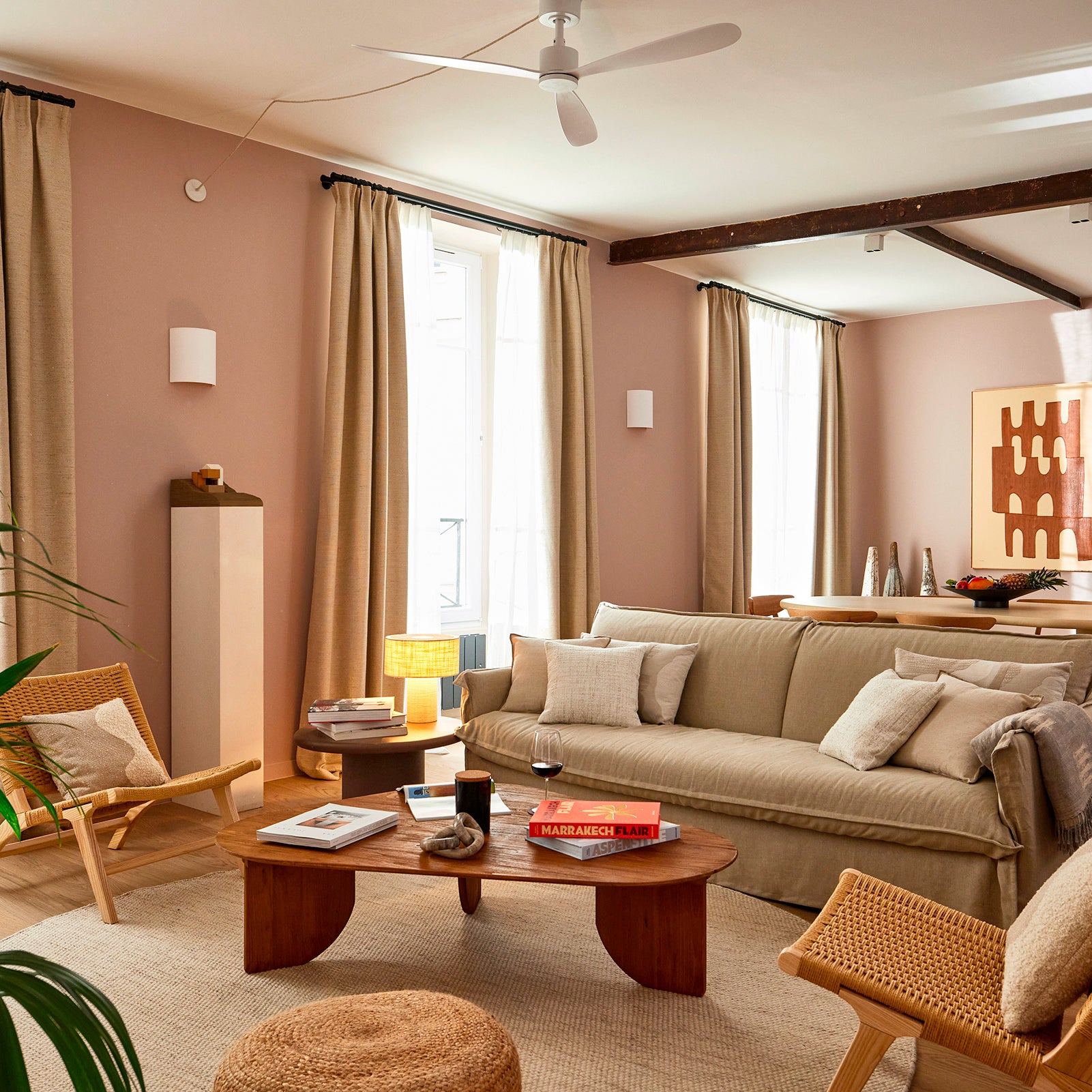 Ce quatre-pièces lumineux a été décoré avec soin dans un style mêlant modernité, influences ethniques et touches industrielles, en parfaite harmonie avec l’architecture du lieu.En étroite collaboration avec l’architecte, nous avons sélectionné un assortiment de produits Madura à la hauteur du standing de cette rénovation : solutions textiles élégantes pour les pièces de vie, occultation performante et durable dans les chambres, et linge de lit conçu pour conjuguer esthétique, confort et résistance à l’usage intensif.