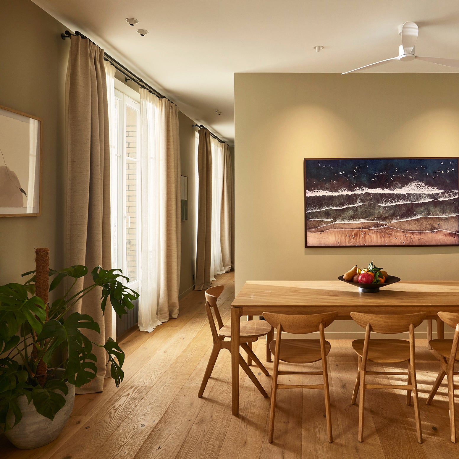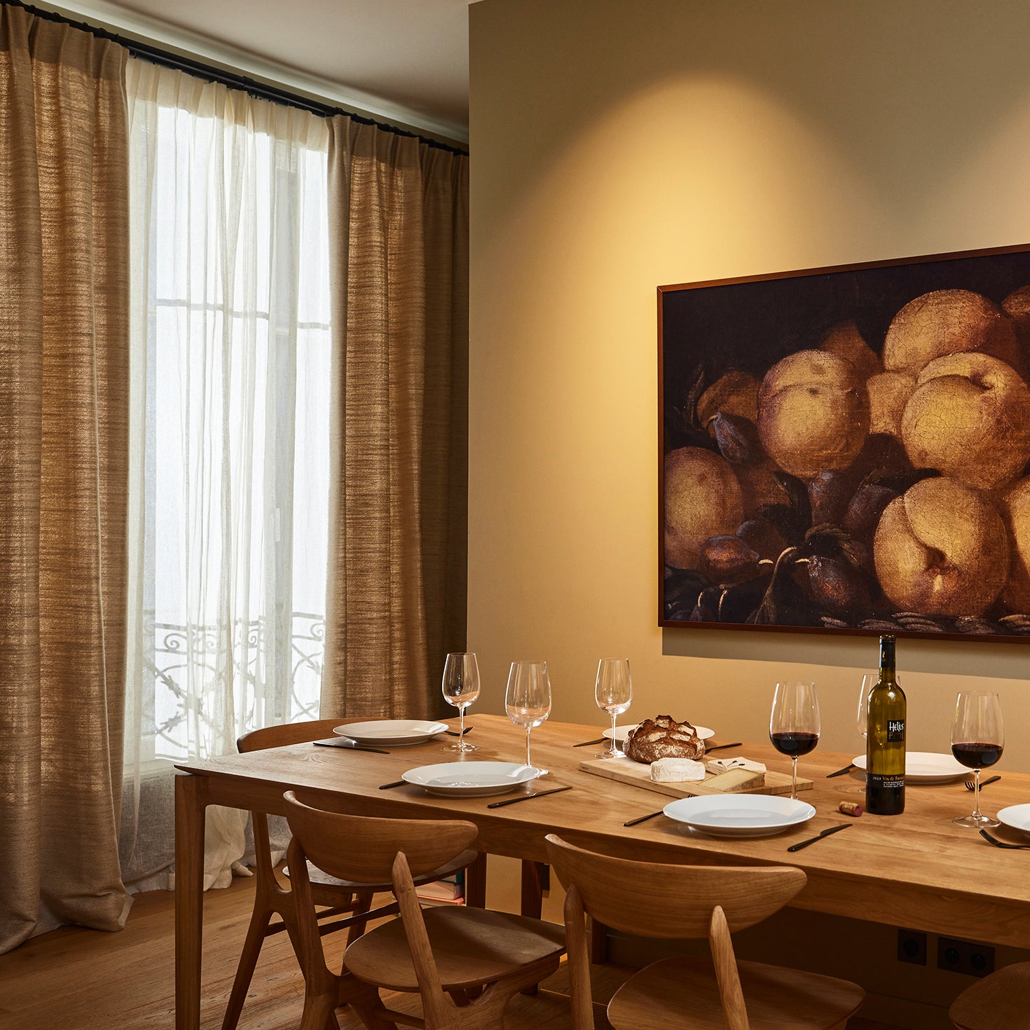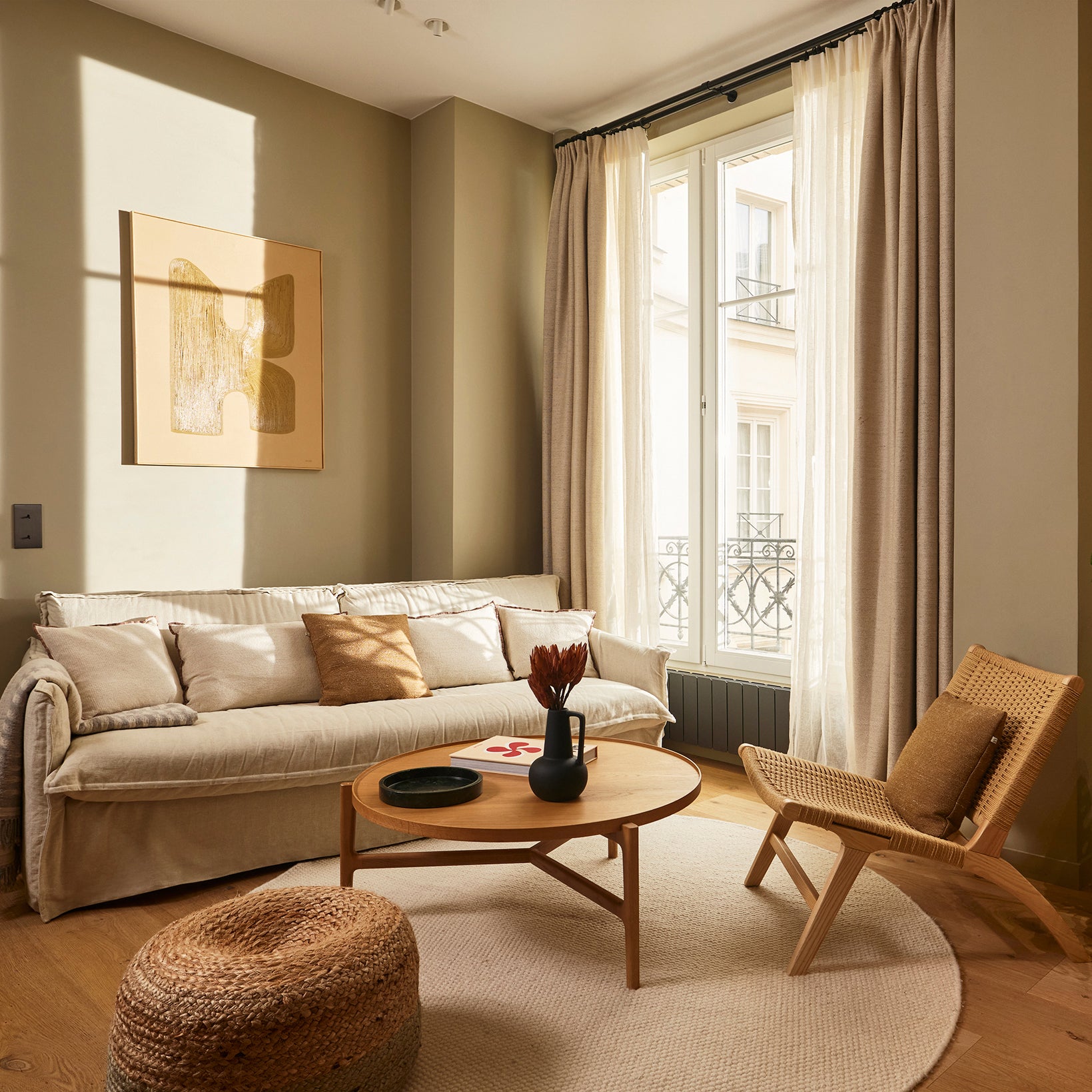 Cette réalisation haut de gamme, pensée pour un meublé touristique quatre pièces, a permis à l’architecte d’aménager des espaces à la fois chaleureux et élégants, répondant aux standards les plus exigeants en matière de confort et de durabilité. En collaboration étroite avec Madura, le projet a intégré des rideaux confectionnés sur mesure, la pose de tringlerie adaptée à chaque configuration, ainsi qu’un assortiment coordonné de linge de lit, coussins décoratifs et mobilier d’appoint, sélectionnés pour leur qualité et leur cohérence esthétique.