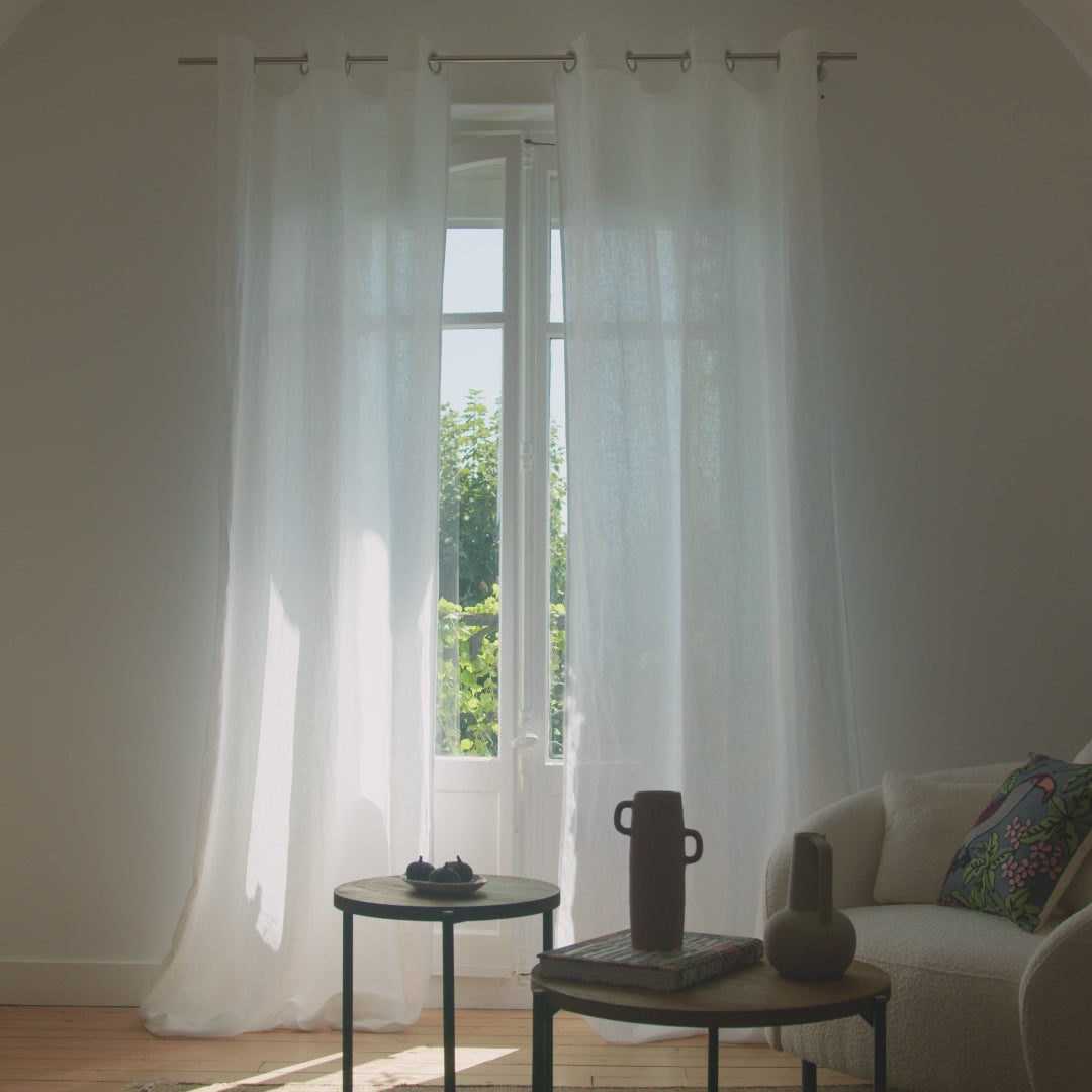 Wij houden van de natuurlijke, eigentijdse look van dit zuiver witte Carlina 100% linnen eyelet gordijn. Het is ideaal om een vleugje authenticiteit toe te voegen aan je interieur.