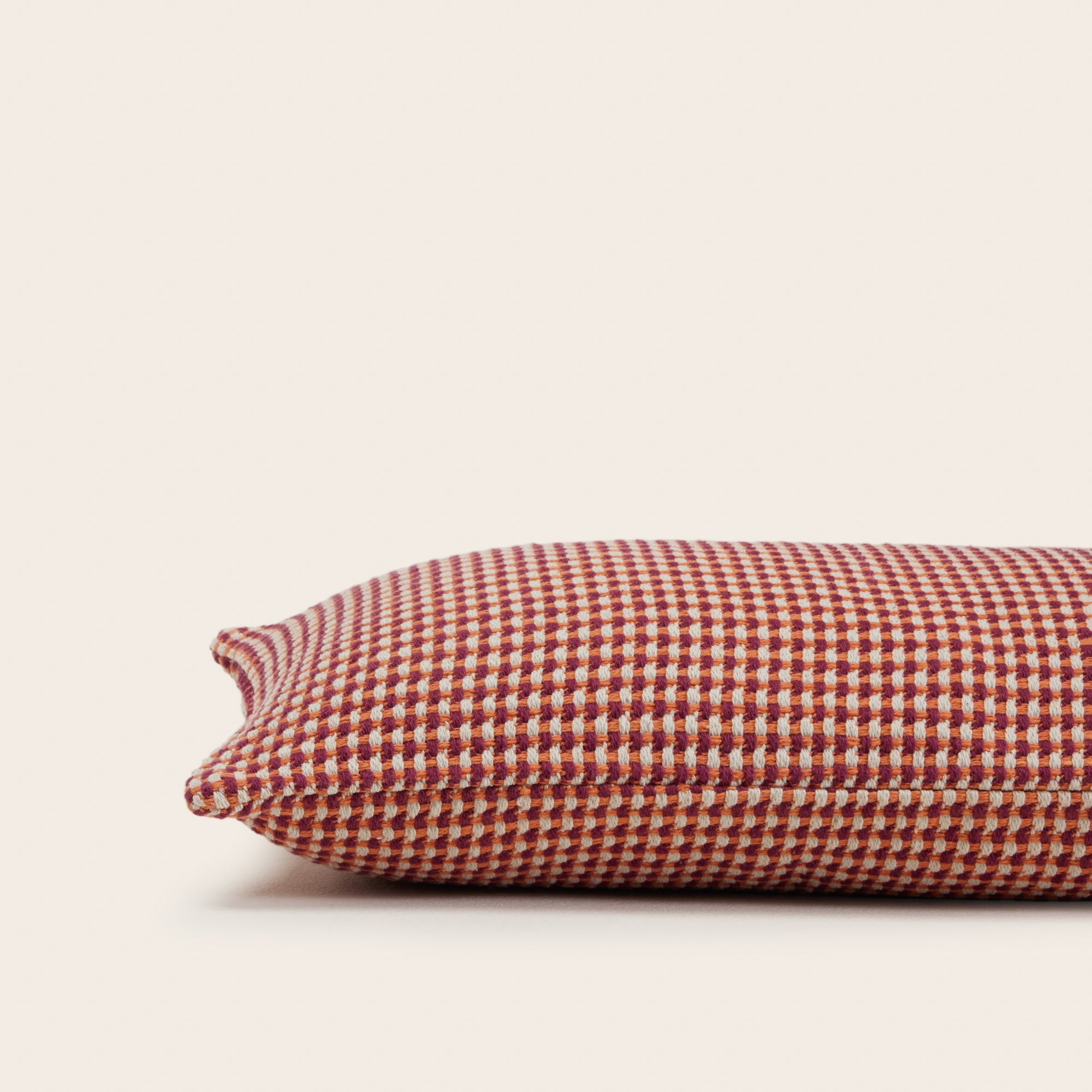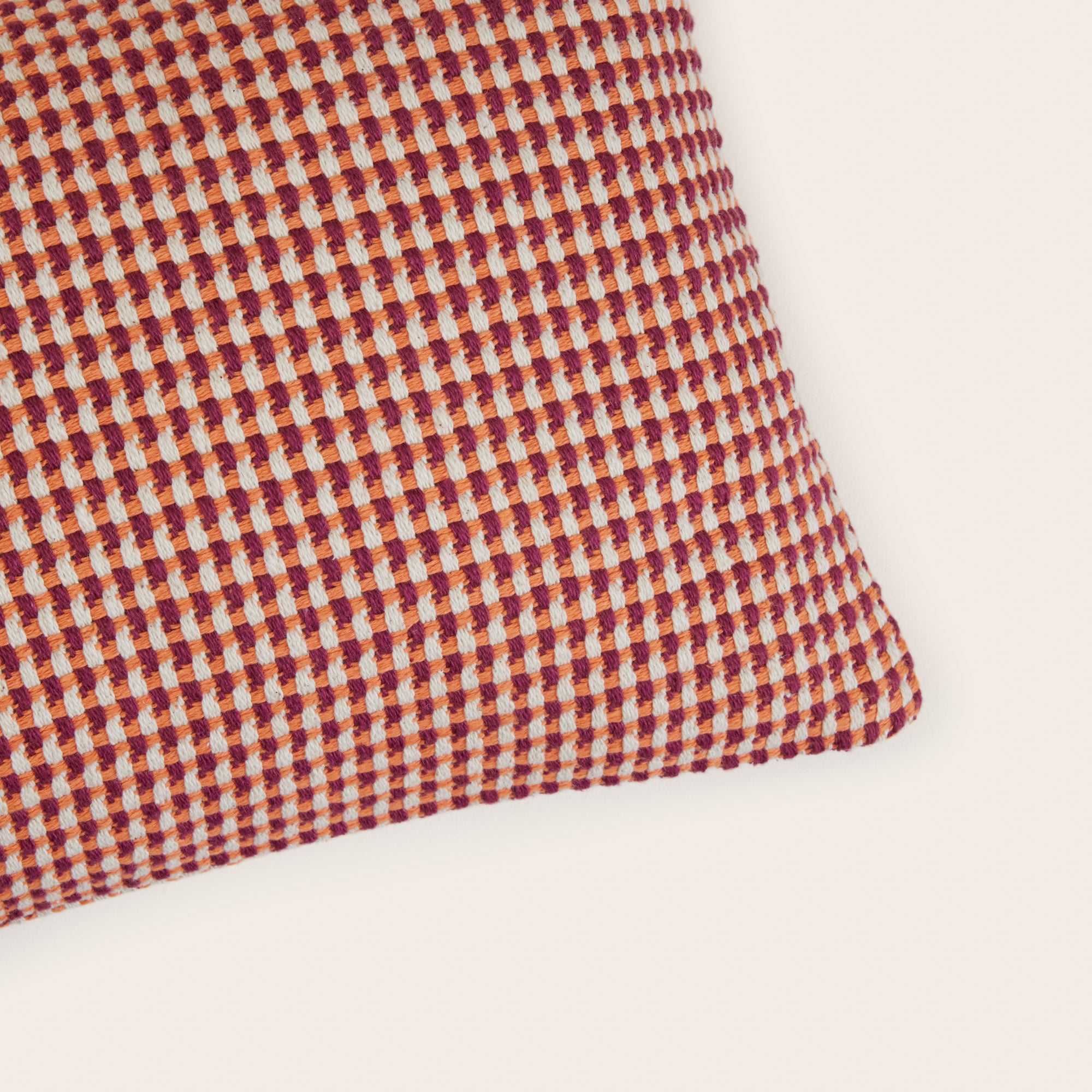 De rechthoekige kussenhoes Mikeno van handgeweven katoen is de perfecte balans tussen natuurlijkheid en verfijning.
