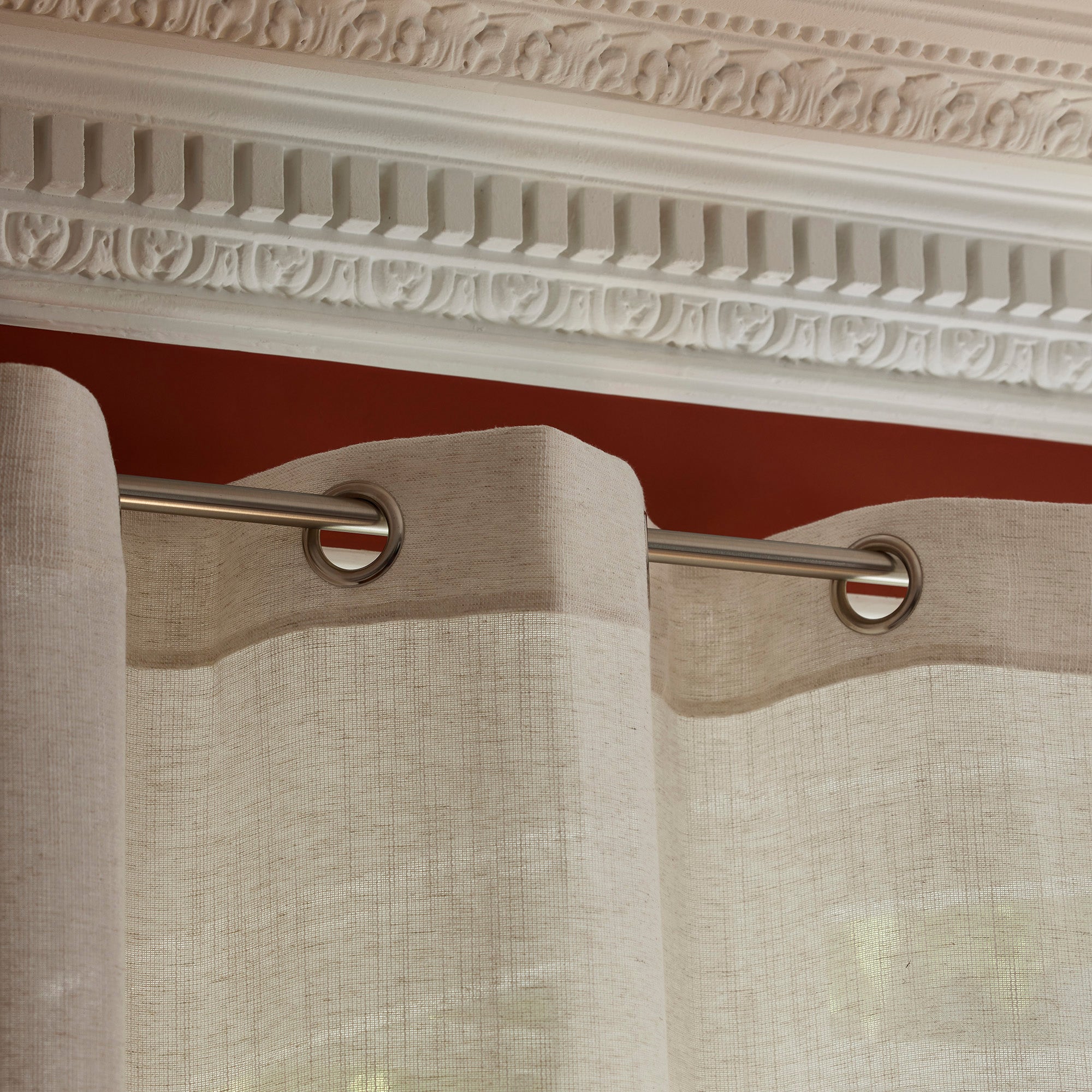 De roede moet 15 cm voorbij elke kant van je raam uitsteken.Indien nodig kan hij worden ingekort met een ijzerzaag of buissnijder. Je hebt nodig roedes en fittingeneen montage om ze te monteren.