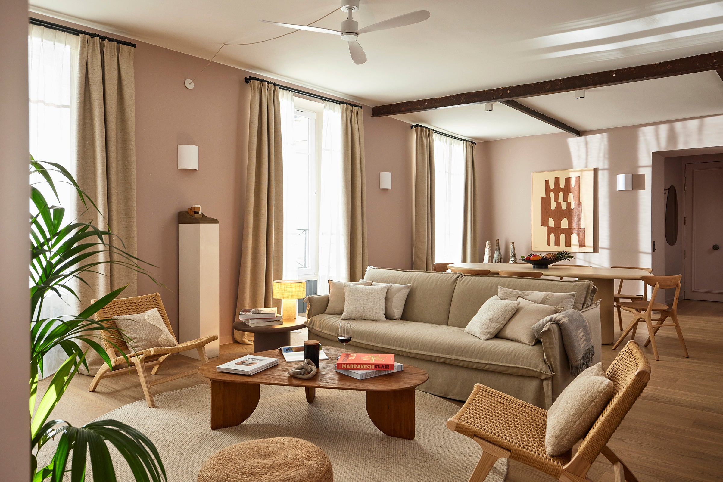Ce quatre-pièces lumineux a été décoré avec soin dans un style mêlant modernité, influences ethniques et touches industrielles, en parfaite harmonie avec l’architecture du lieu.En étroite collaboration avec l’architecte, nous avons sélectionné un assortiment de produits Madura à la hauteur du standing de cette rénovation : solutions textiles élégantes pour les pièces de vie, occultation performante et durable dans les chambres, et linge de lit conçu pour conjuguer esthétique, confort et résistance à l’usage intensif.