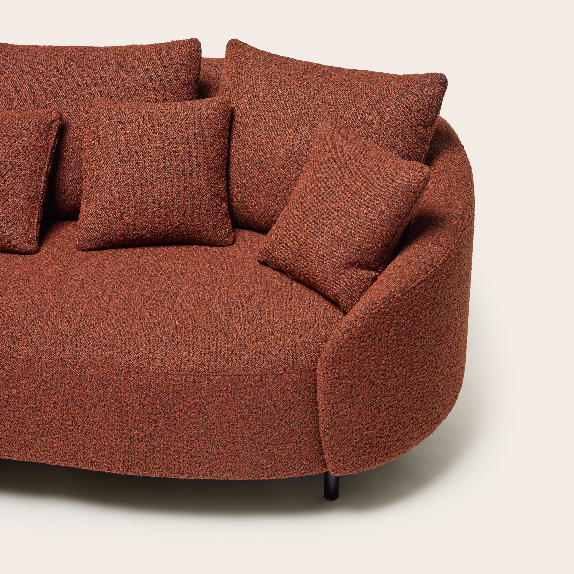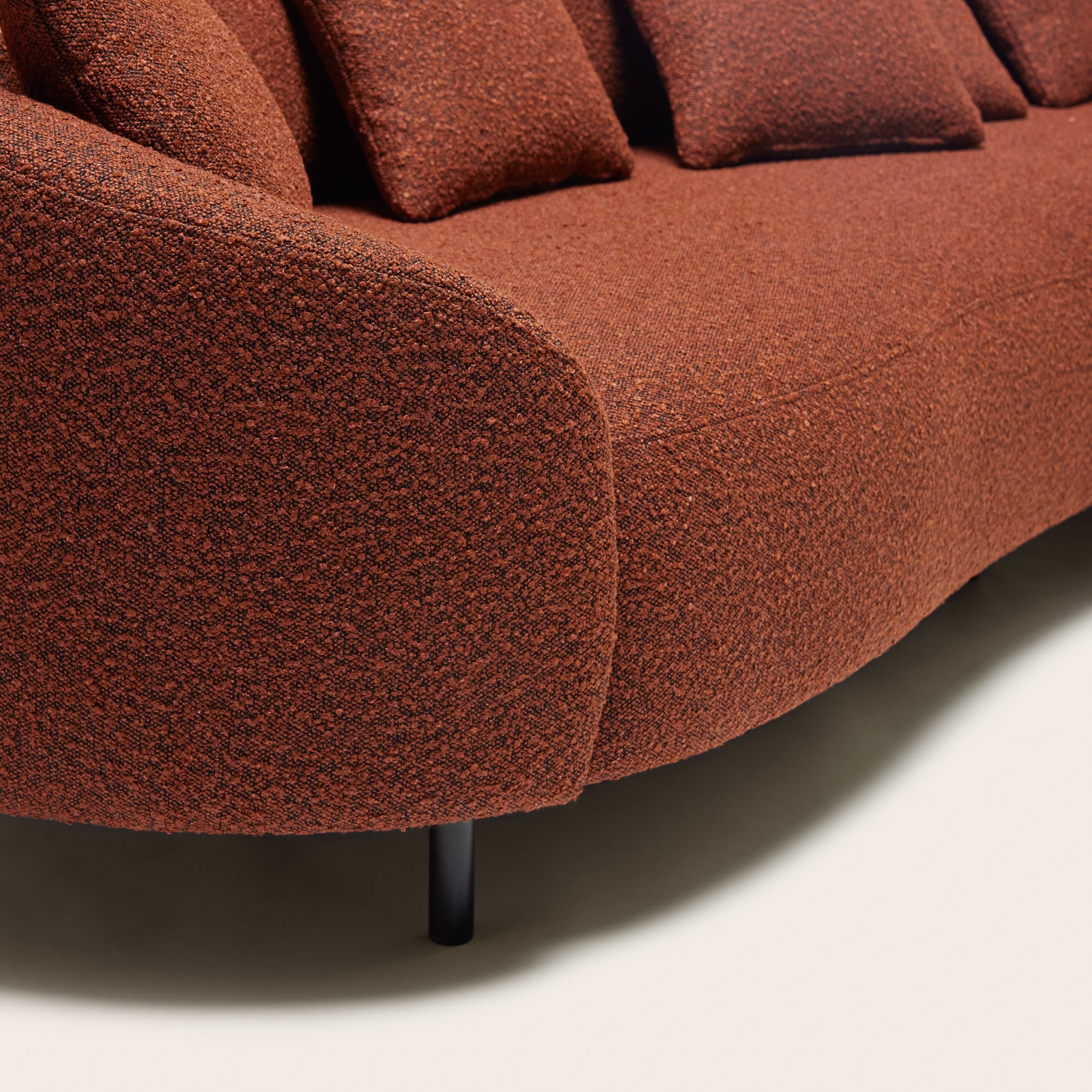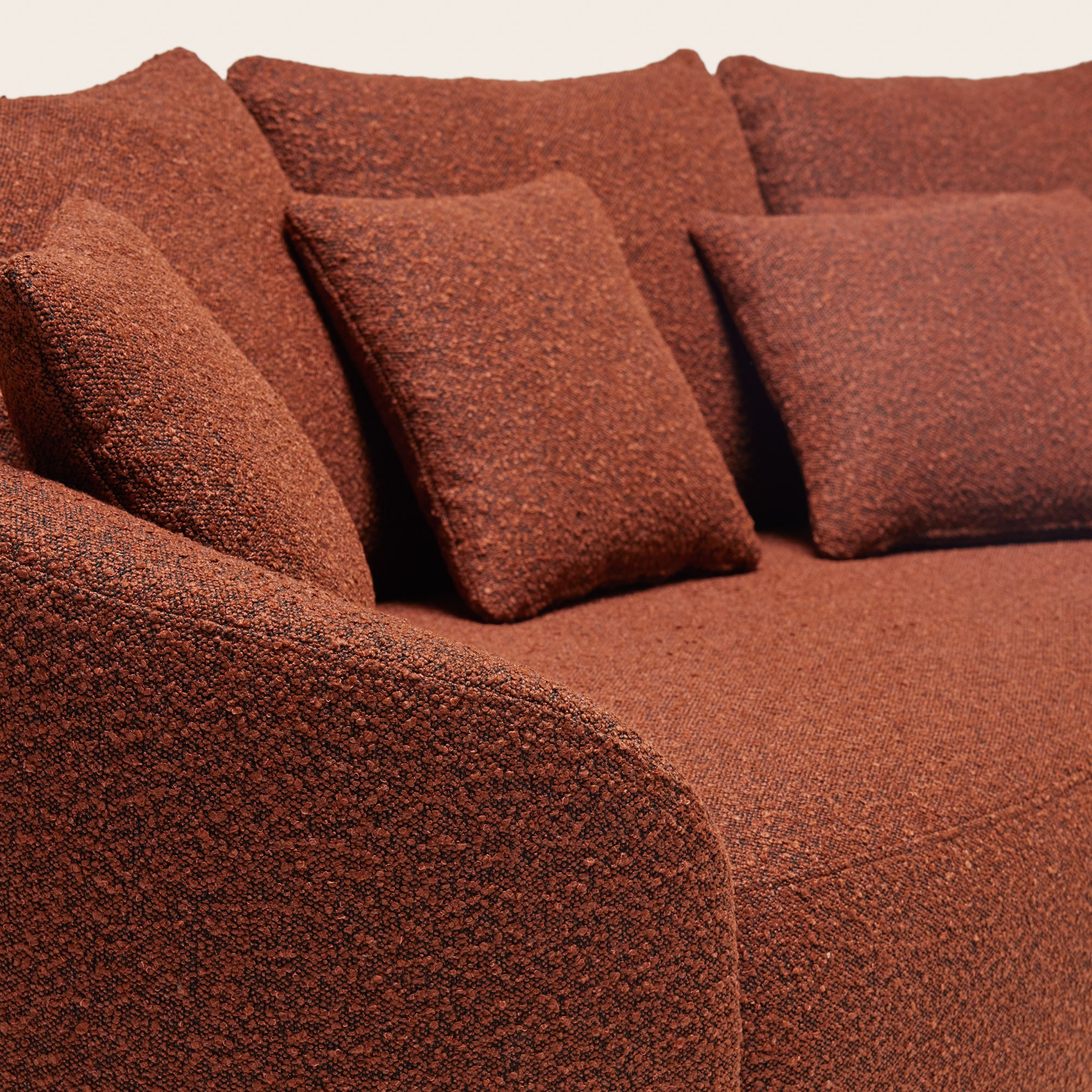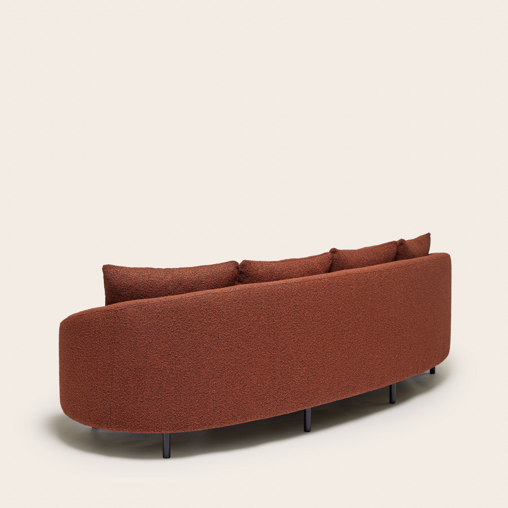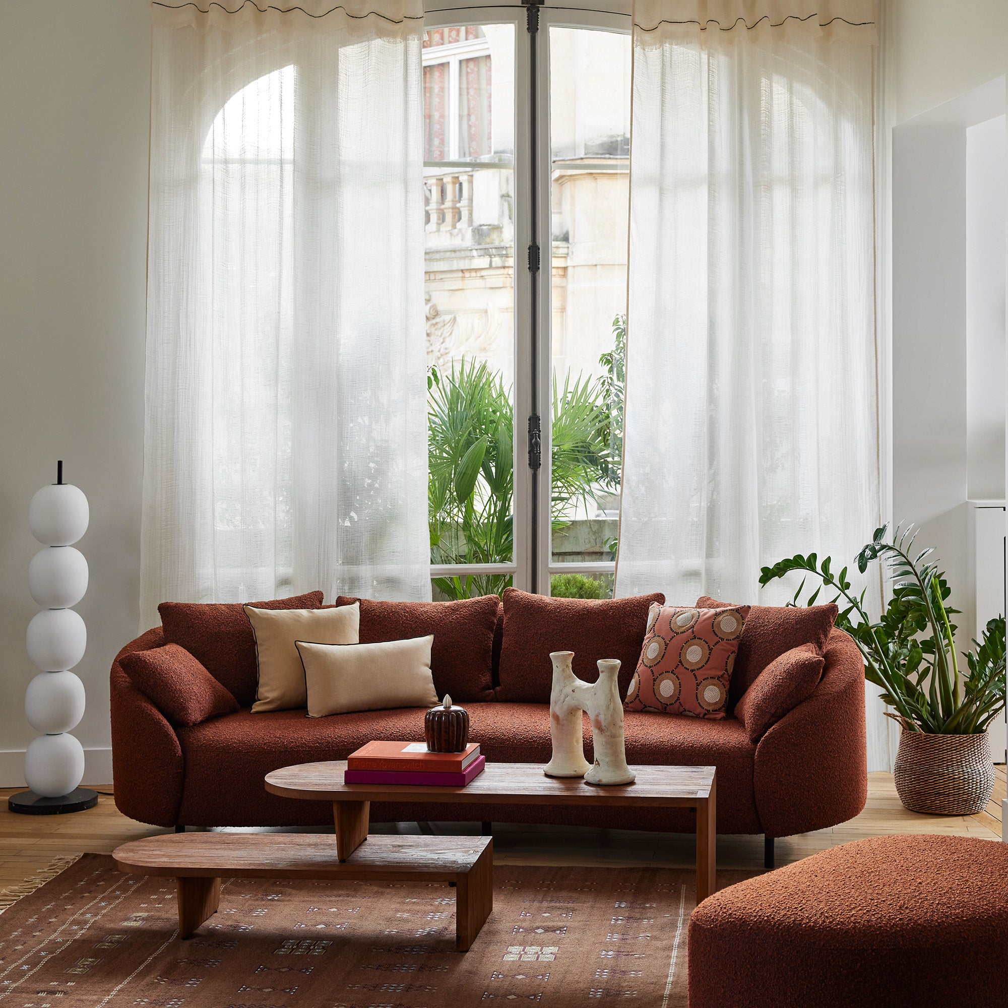 Courbes enveloppantes et réconfortantes, bouclette à la douceur indéniable, le canapé 3 places Julika s'impose comme l'un des véritables coups de cœur de notre collection. Il se réinvente en orange brique pour la nouvelle saison.