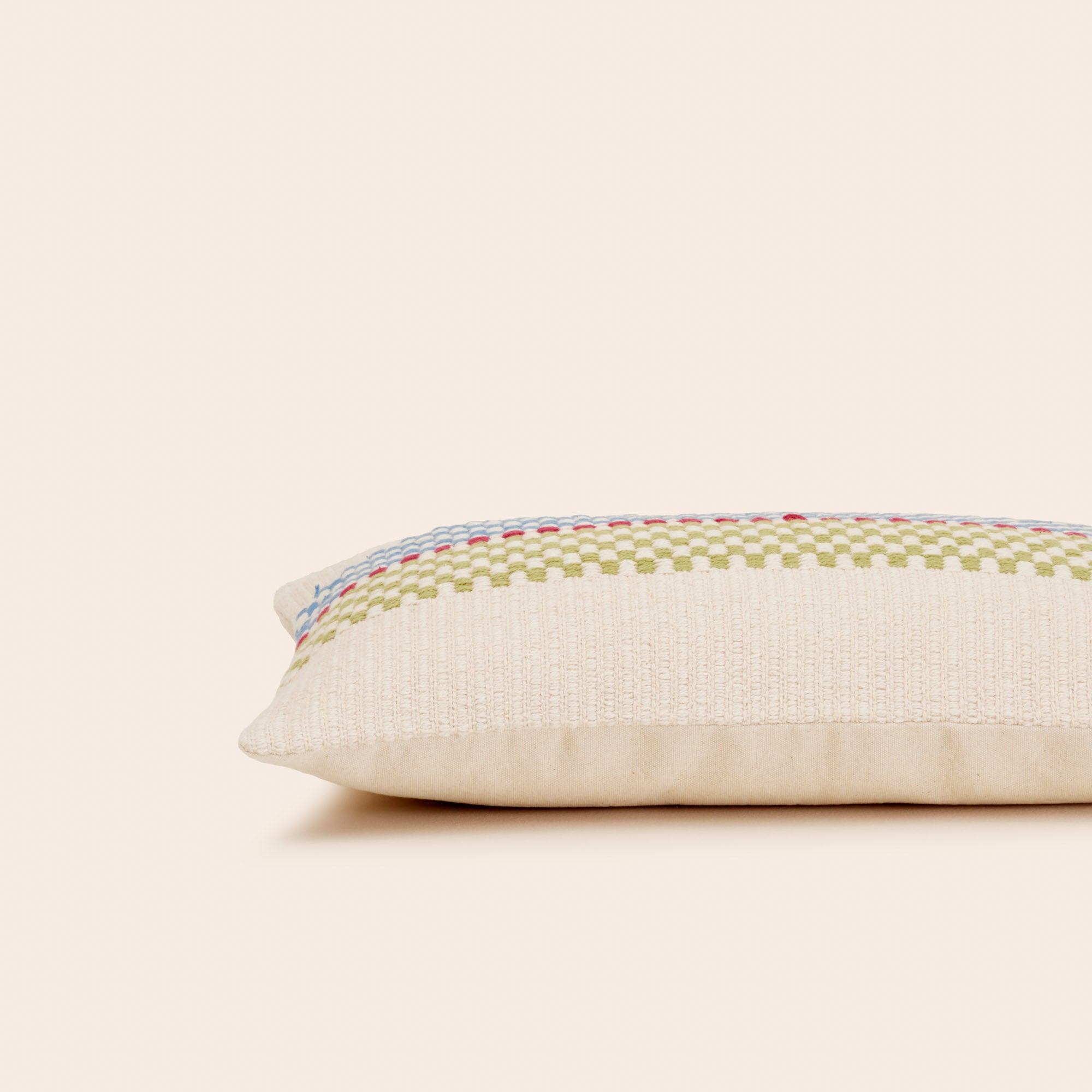 Le coussin Eméo insuffle une touche graphique et ethnique dans votre intérieur. Avec son jacquard de rayures en damier, mariant la modernité des formes géométriques à l'authenticité des textures traditionnelles, il capture l'essence d'un artisanat riche et contemporain.