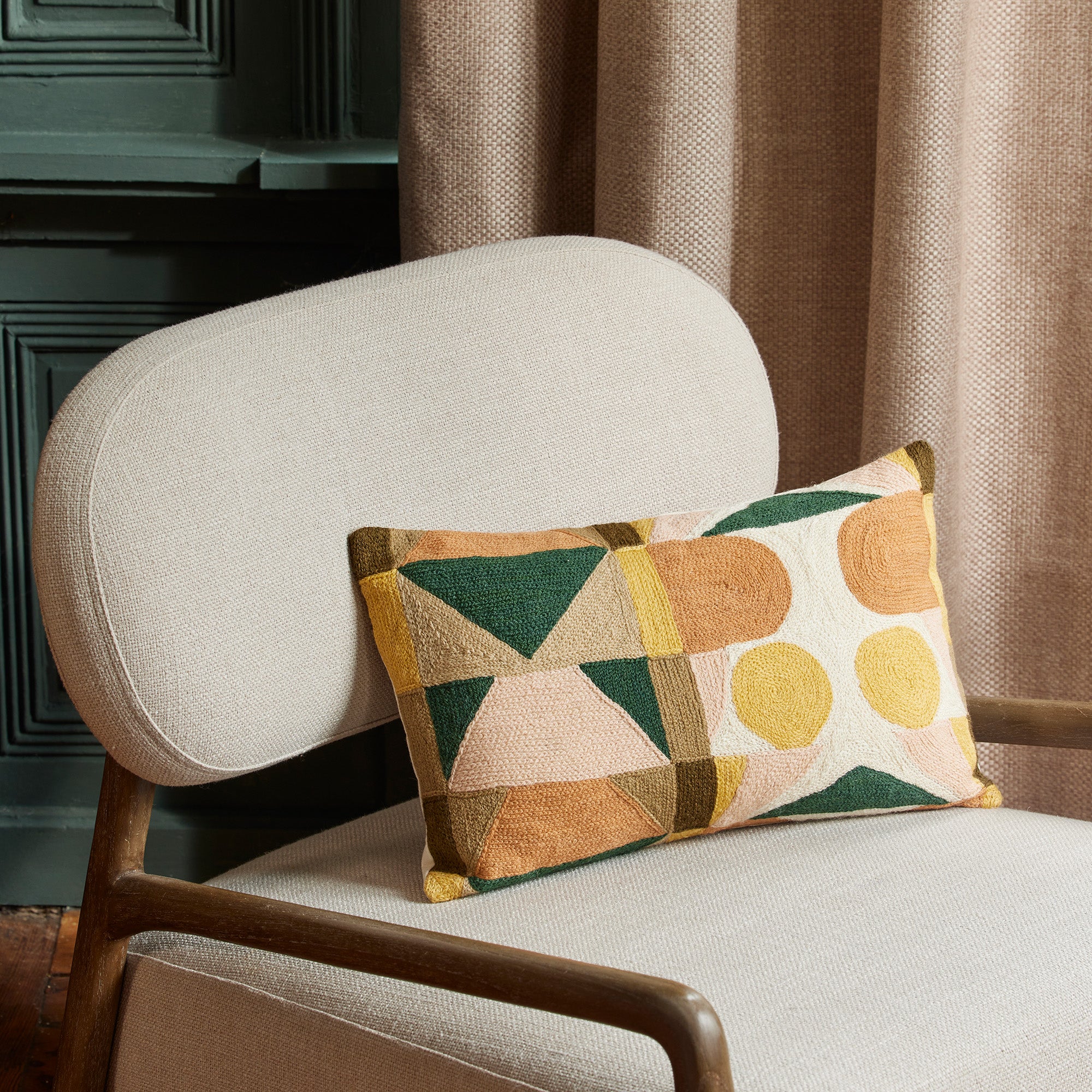 La housse de coussin Nikolla est un véritable objet d’attention, capable de transformer votre décoration. Avec ses motifs graphiques et ses couleurs en tons chauds, ce coussin est conçu pour capturer le regard et réchauffer l'ambiance de votre intérieur.