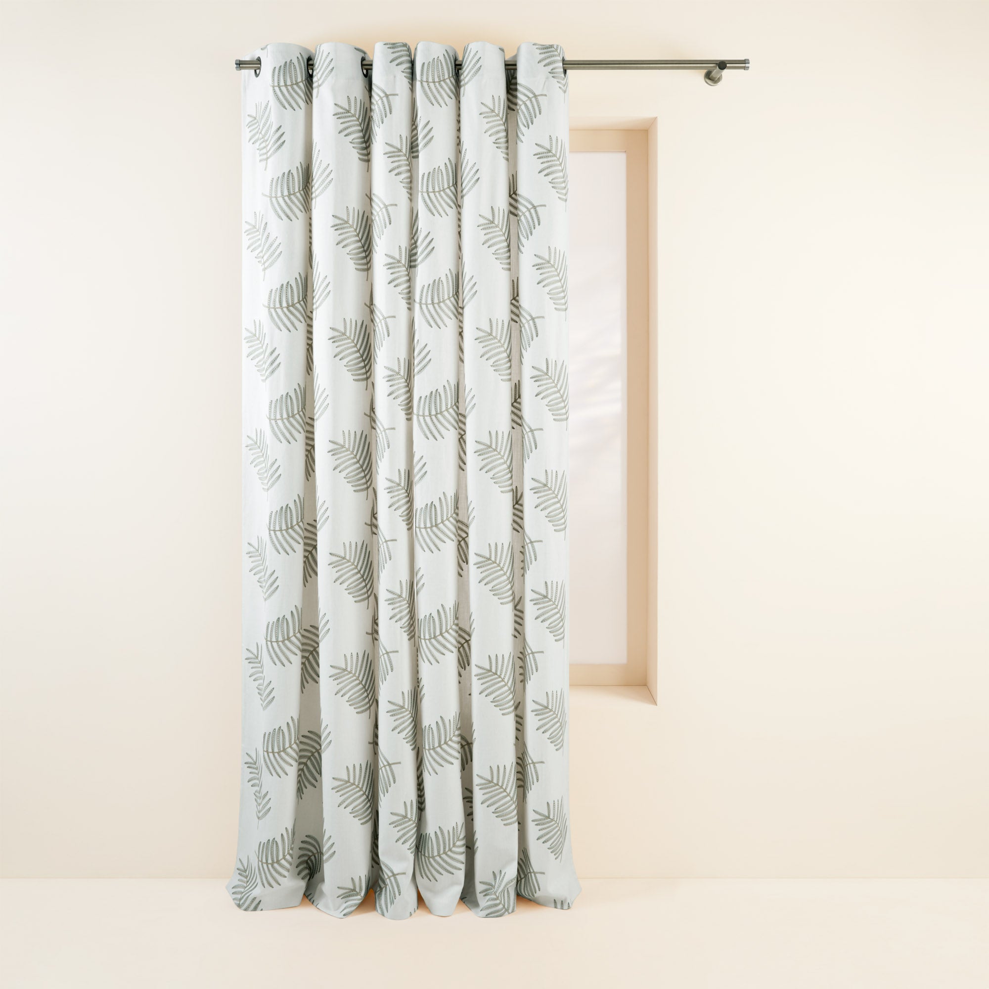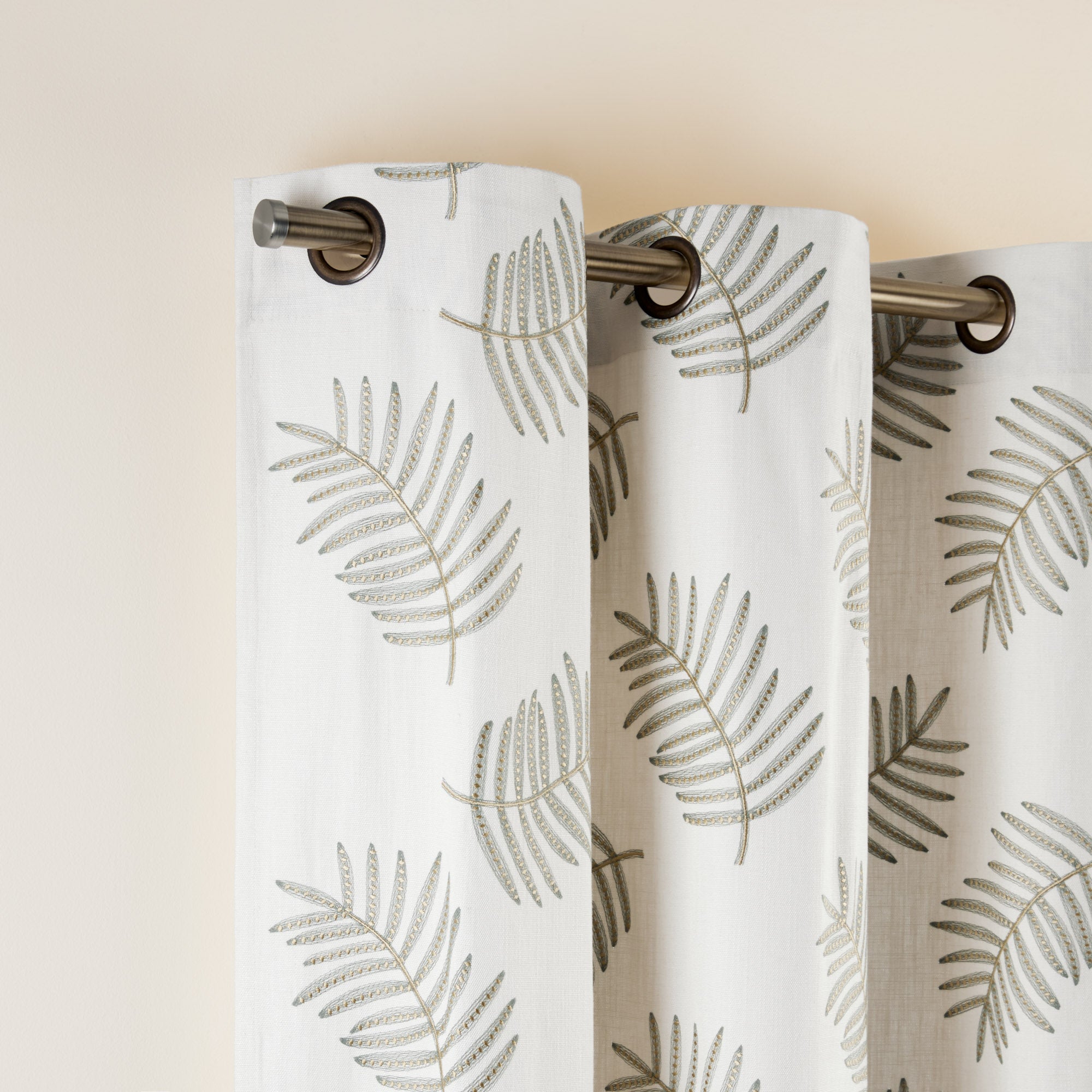 Rideau à oeillets dorés Filico blanc cassé et sauge