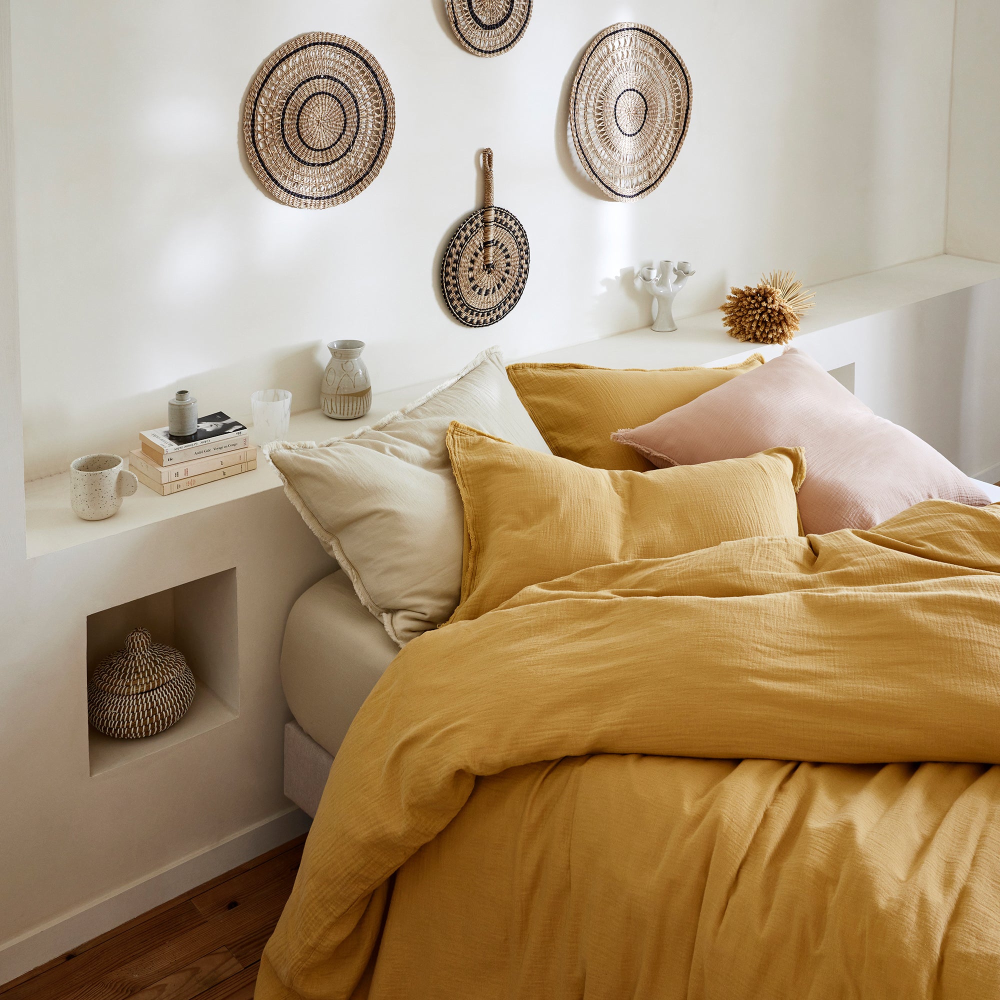 Douce par nature, car utilisée pour les langes de bébé, notre gaze de coton est lavée pour vous conférer encore plus de confort. On aime ses propriétés absorbantes et hypoallergéniques qui rendent cette parure incontournable en toute saison. Le détail qui change tout : le point bourdon ton sur ton avec le bord vif qui forme une délicate frange.