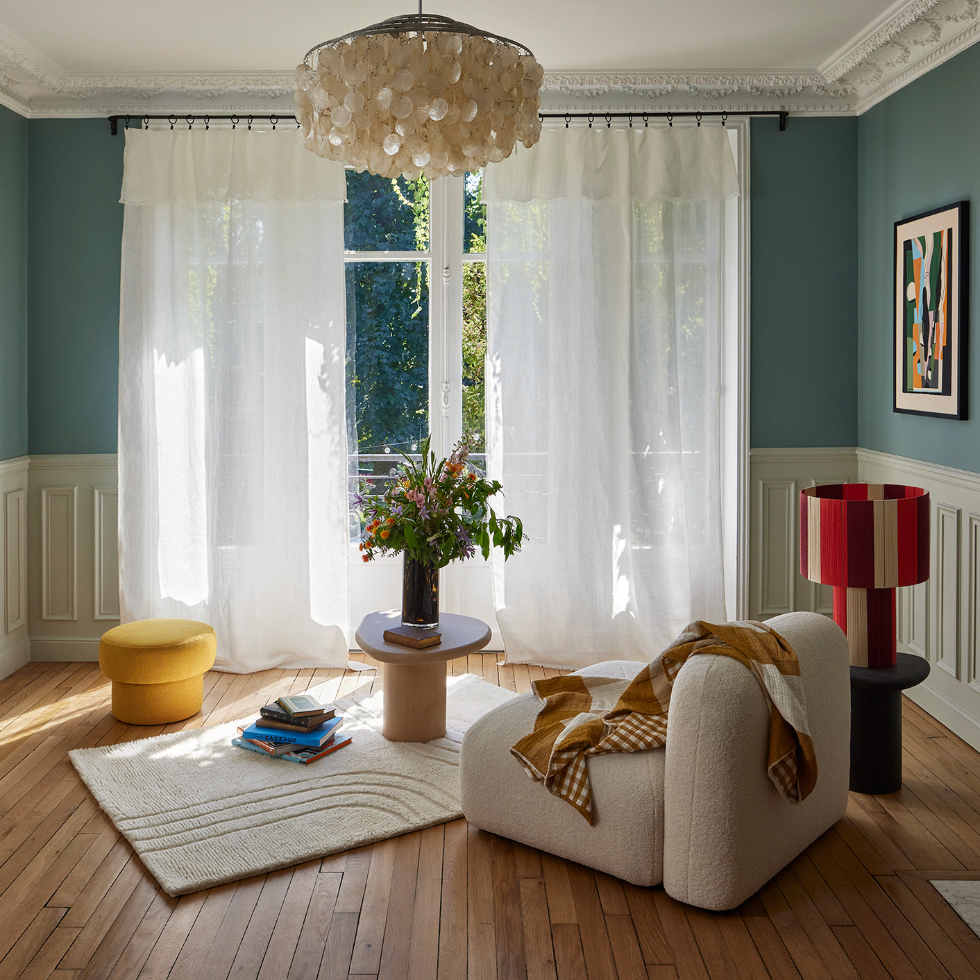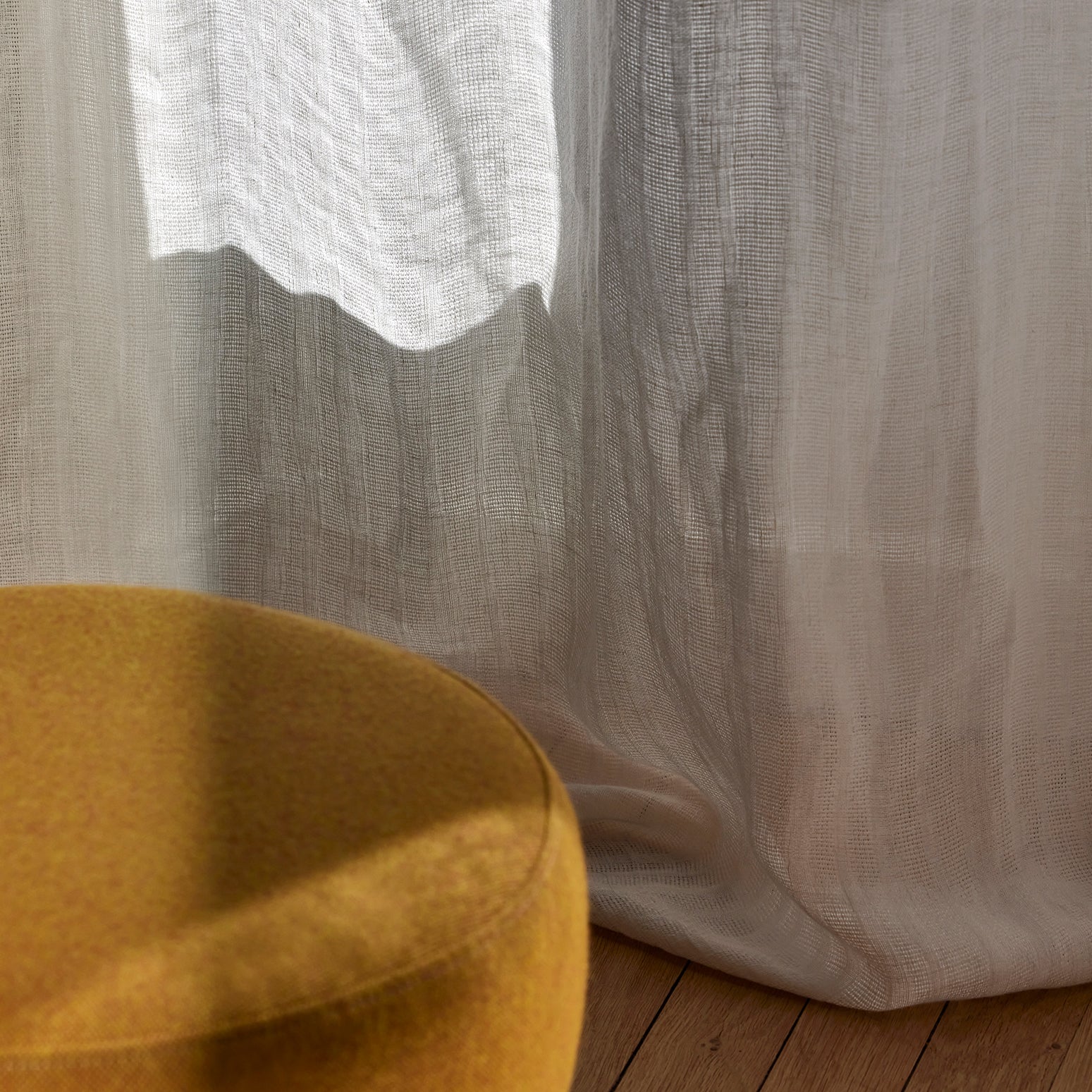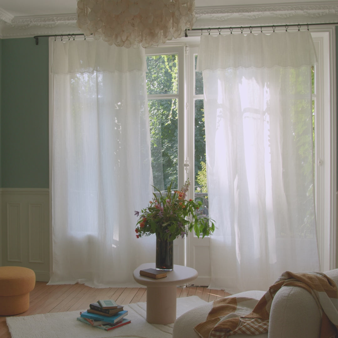Le voilage Eole blanc se démarque par son chanvre lavé et sa finition frangée présente aux extrémités haute et basse. Il offre un petit air bohème et frais en laissant passer la lumière tout en préservant votre intimité.